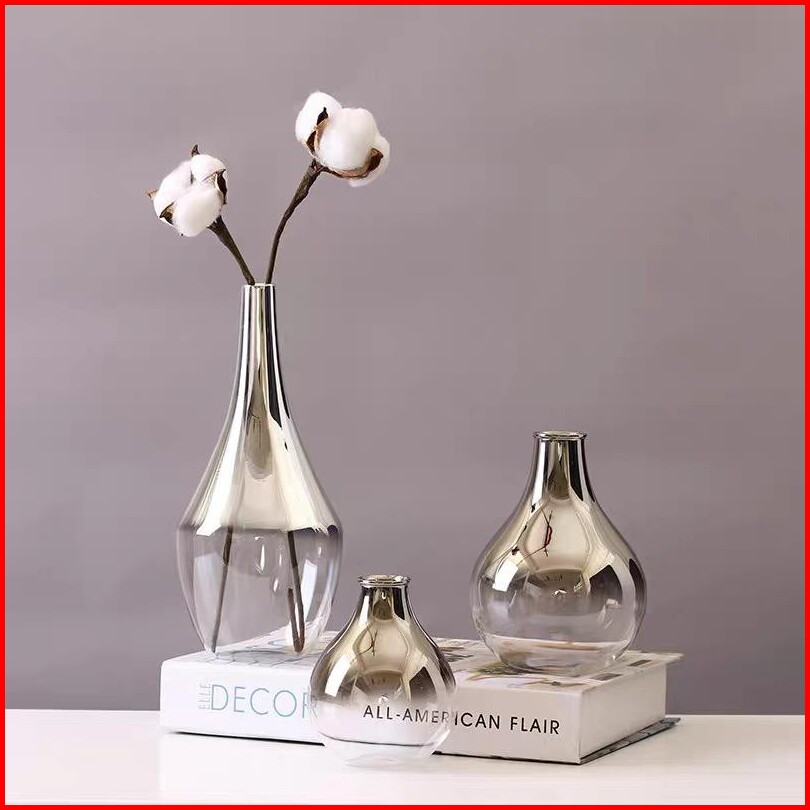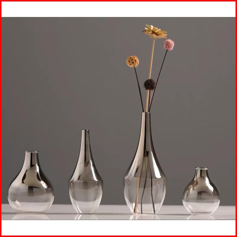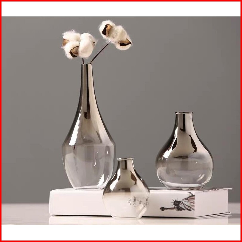Roemahsoelthan 37. Mediterranian Silver Vase Vas Bunga Pot Bunga Kaca Silver Putih