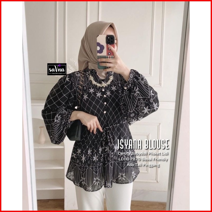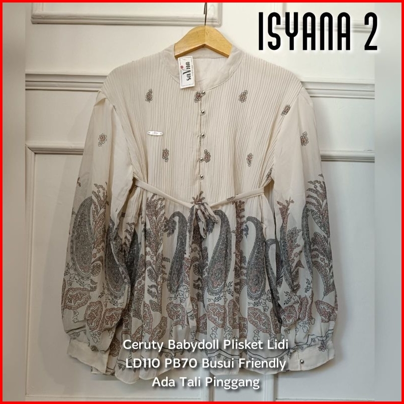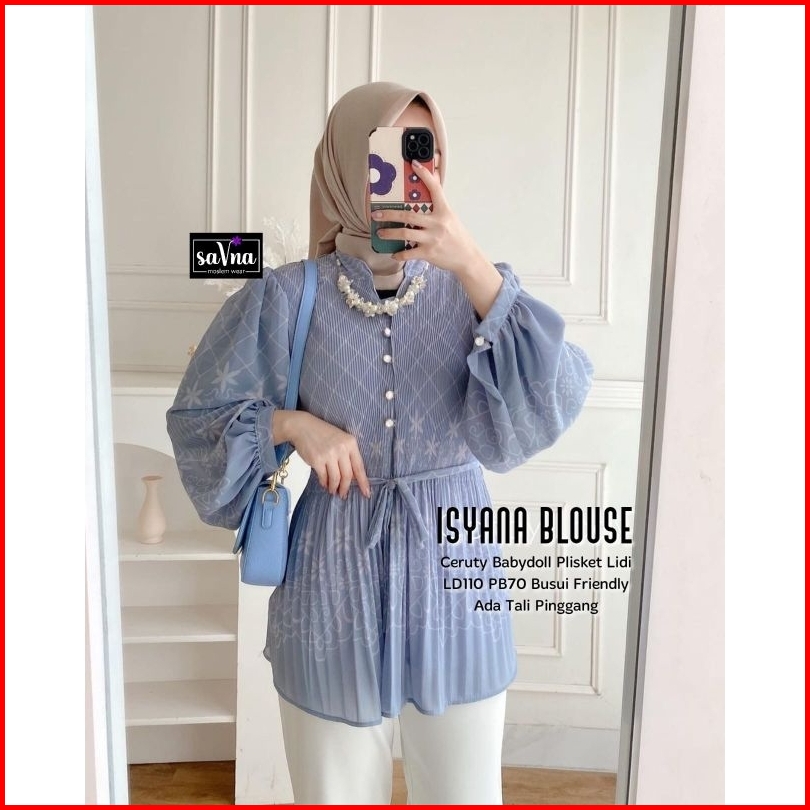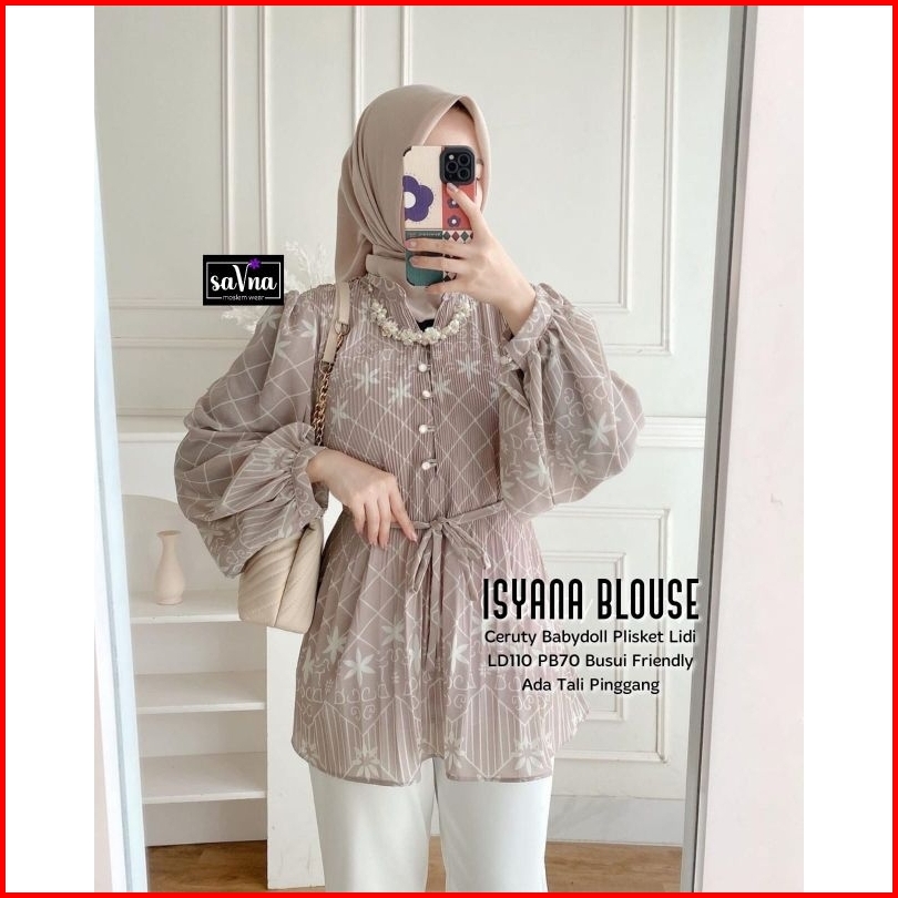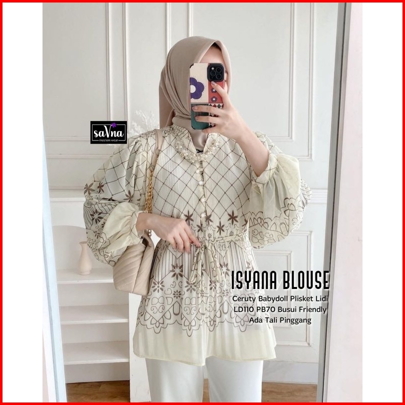 Isyana Blouse Cream Atasan Pakaian Wanita Terbaru Tunik Lengan Balon Kemeja Blus Baju Motif Blouse Top