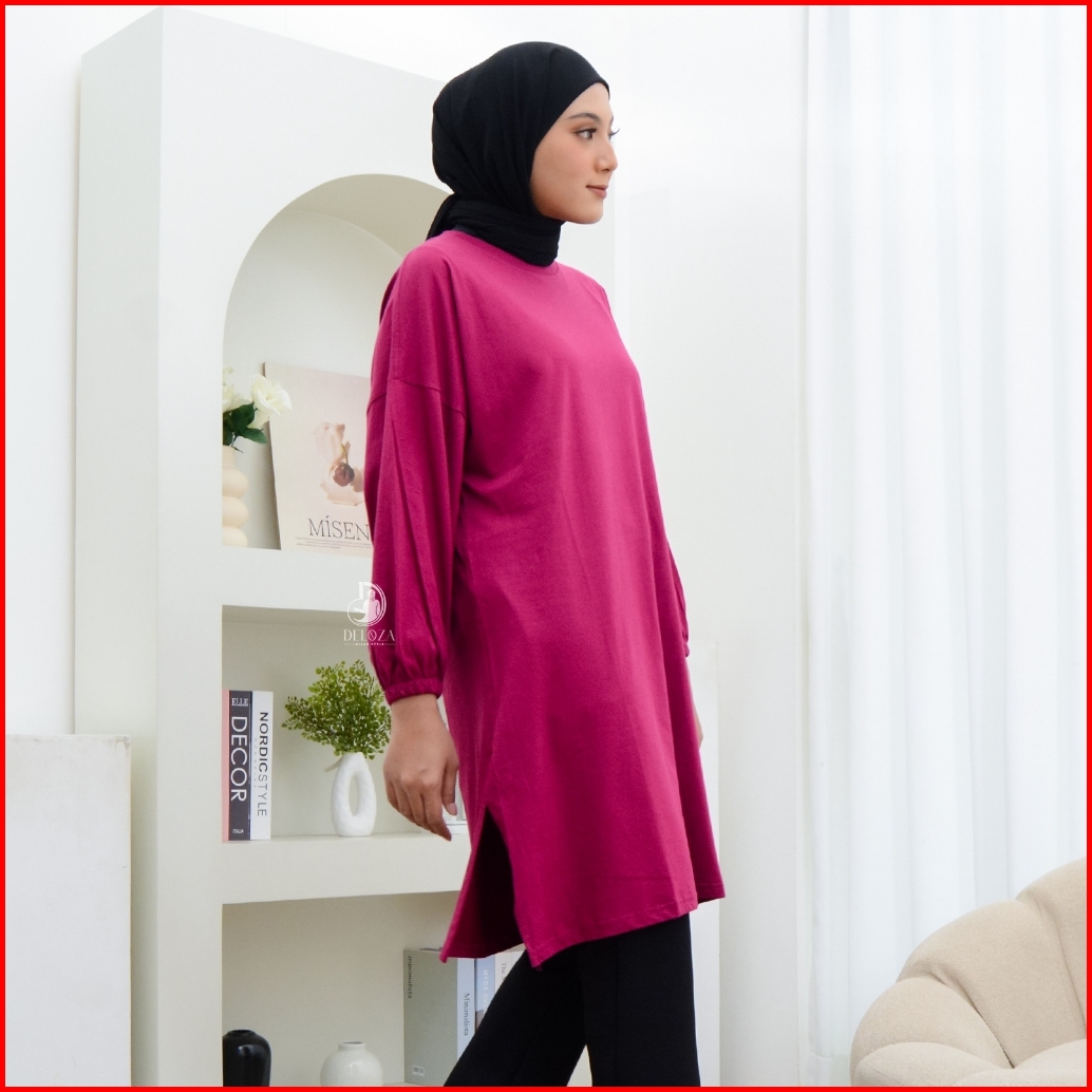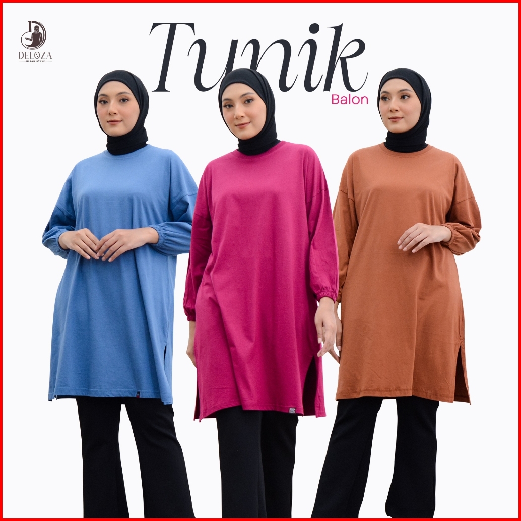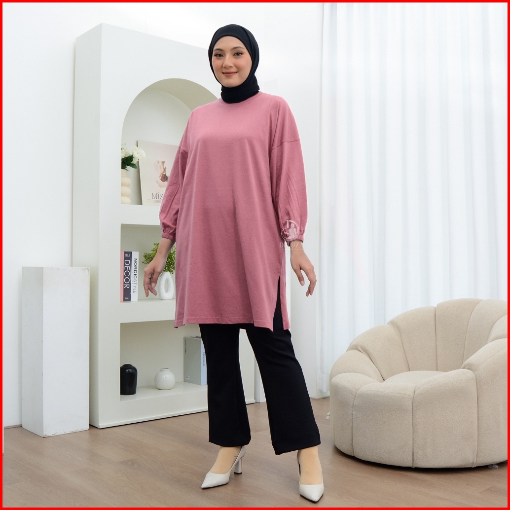 Araya Tunik Balon Oversize Lengan Balon Atasan Wanita Panjang Polos Midi Dress Jumbo Katun Combed