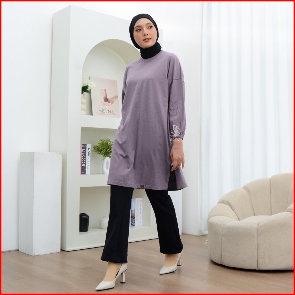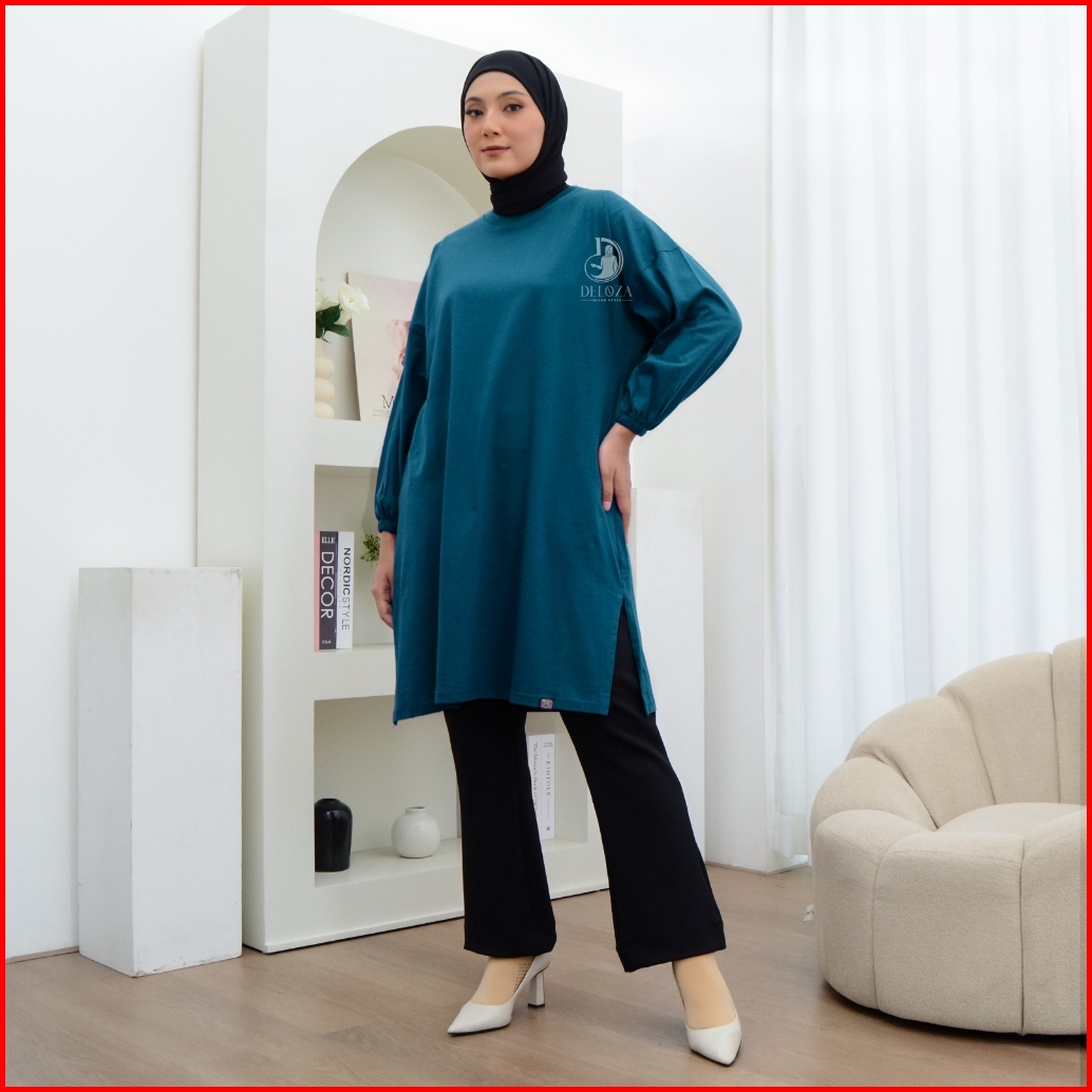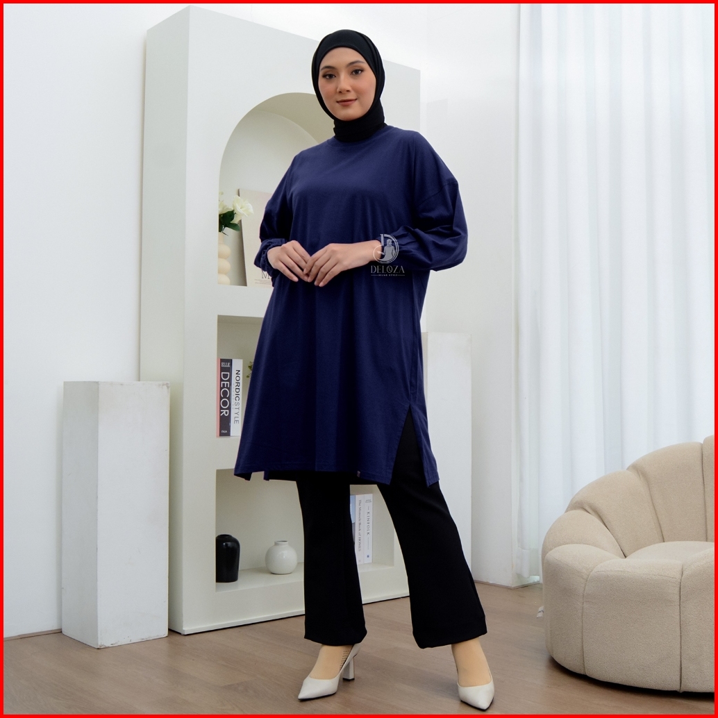 Araya Tunik Balon Oversize Lengan Balon Atasan Wanita Panjang Polos Midi Dress Jumbo Katun Combed