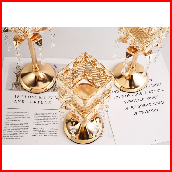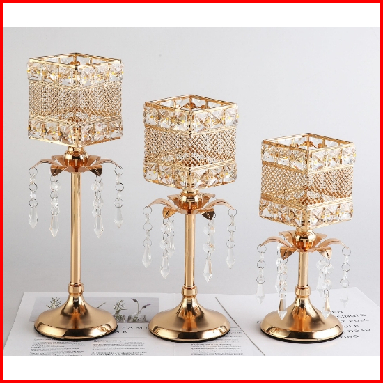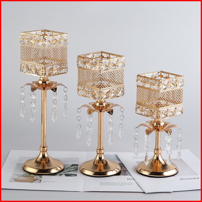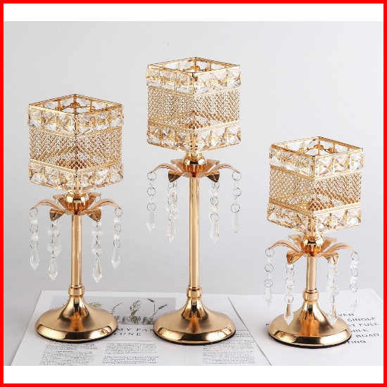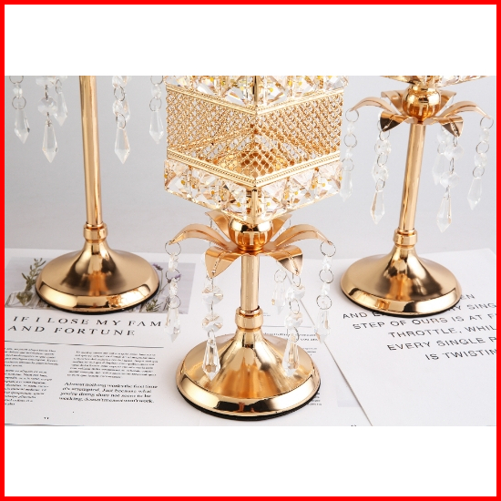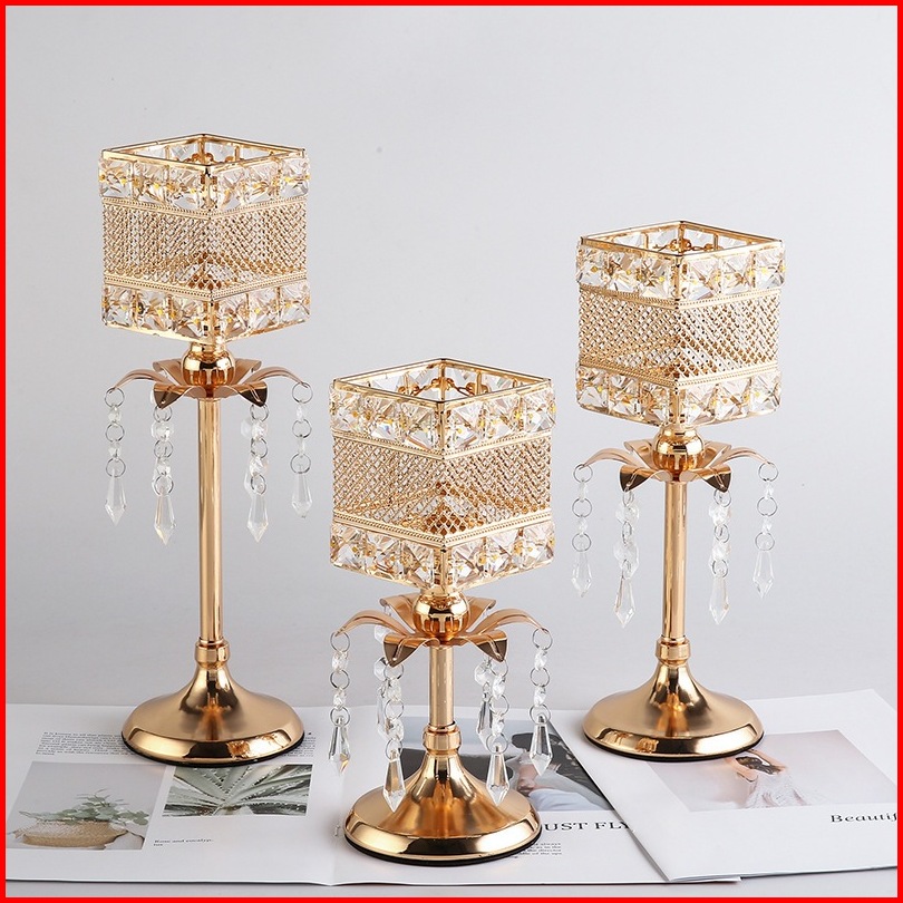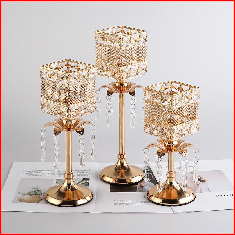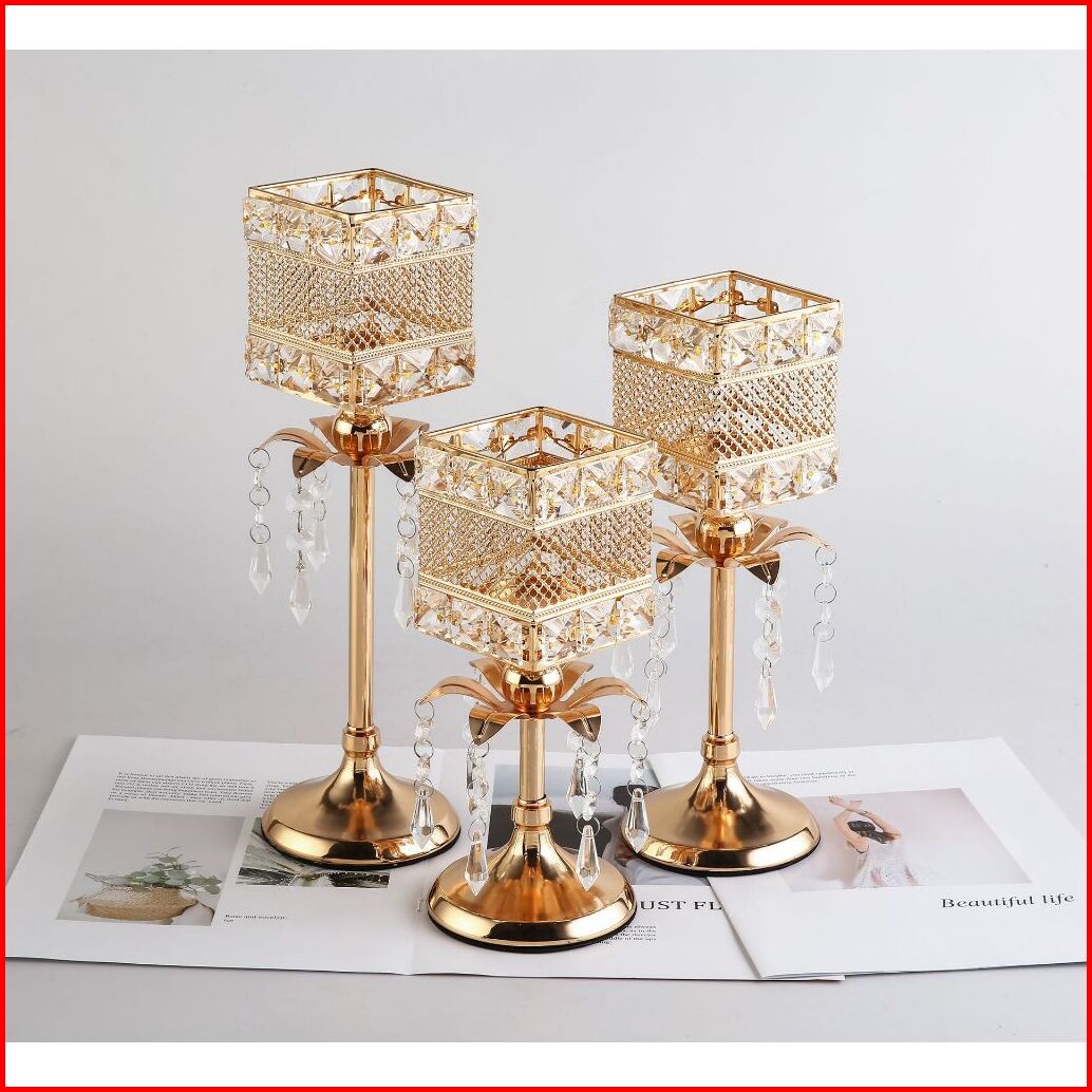 3 Height Ornamen Besi Dengan Liontin Candle Holder Golden Crystal Tea Light Sparklers Dekorasi Rumah Cahaya Lilin Dekora