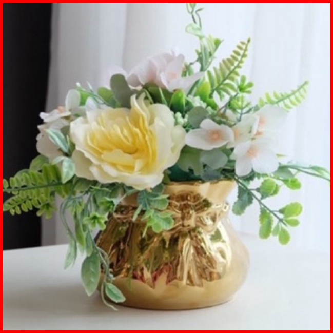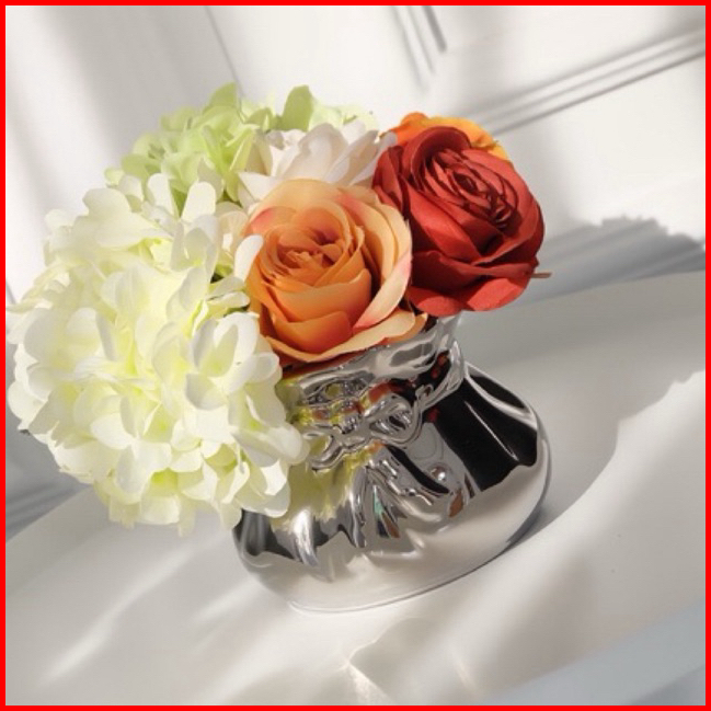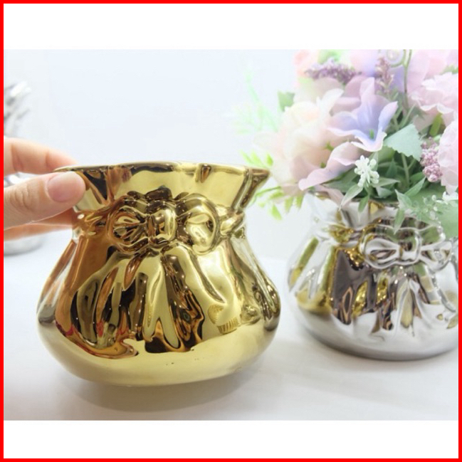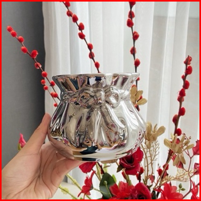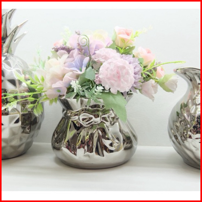 Vas Bunga Keramik Dekorasi Silver - Ribbon Pita Premium
