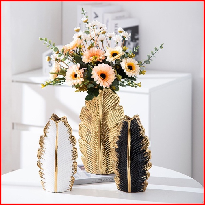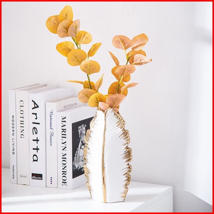Lora Vas Pot Bunga Keramik Benttuk Daun Pajangan Astetik
