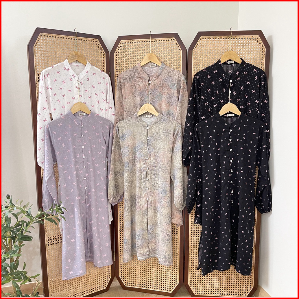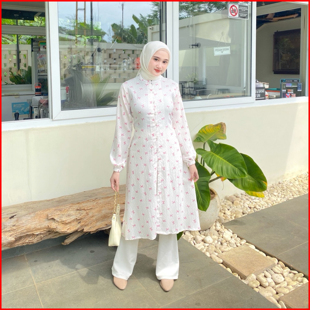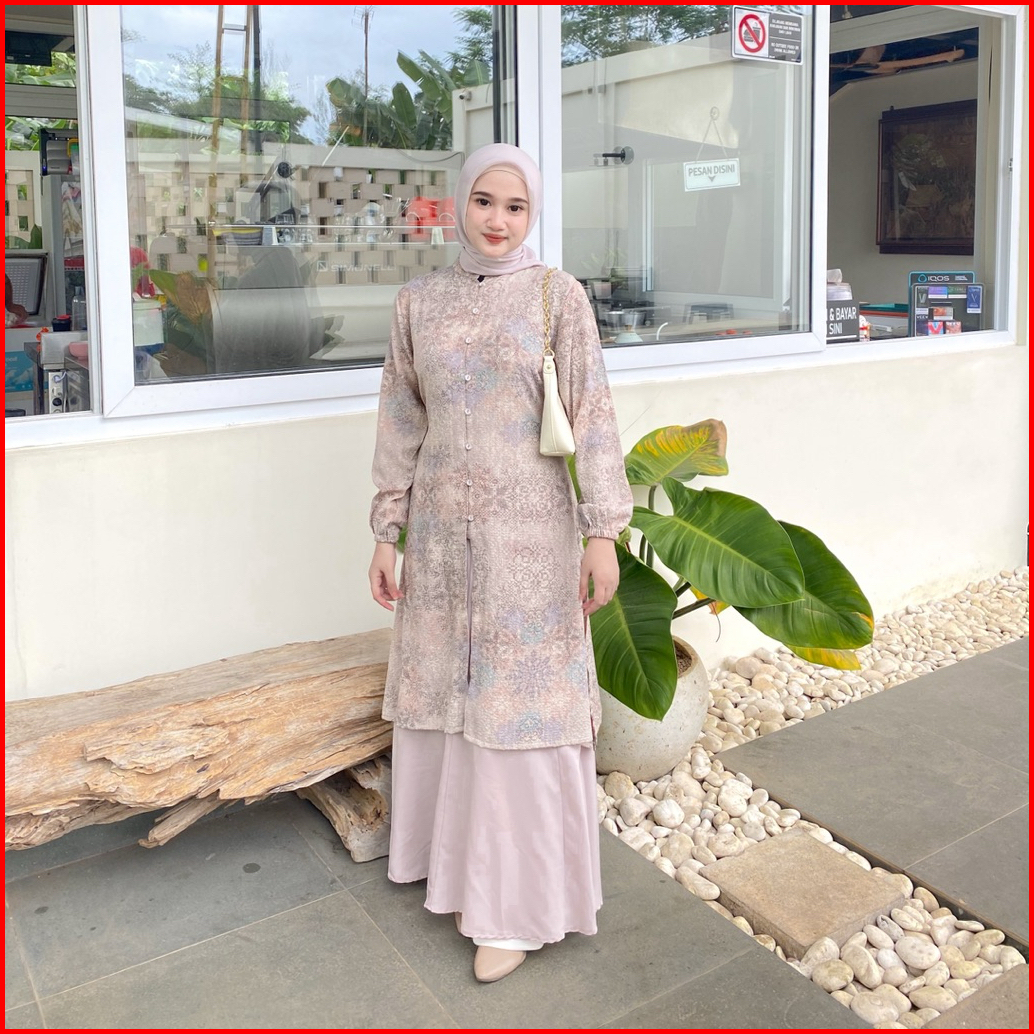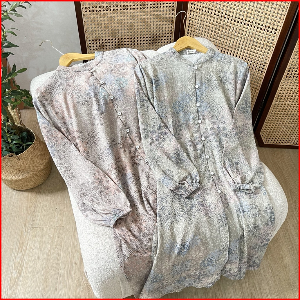 Efabric - Samira Tunik Motif Crinkle Tunik Wanita Panjang Tunik Melayu Kondangan