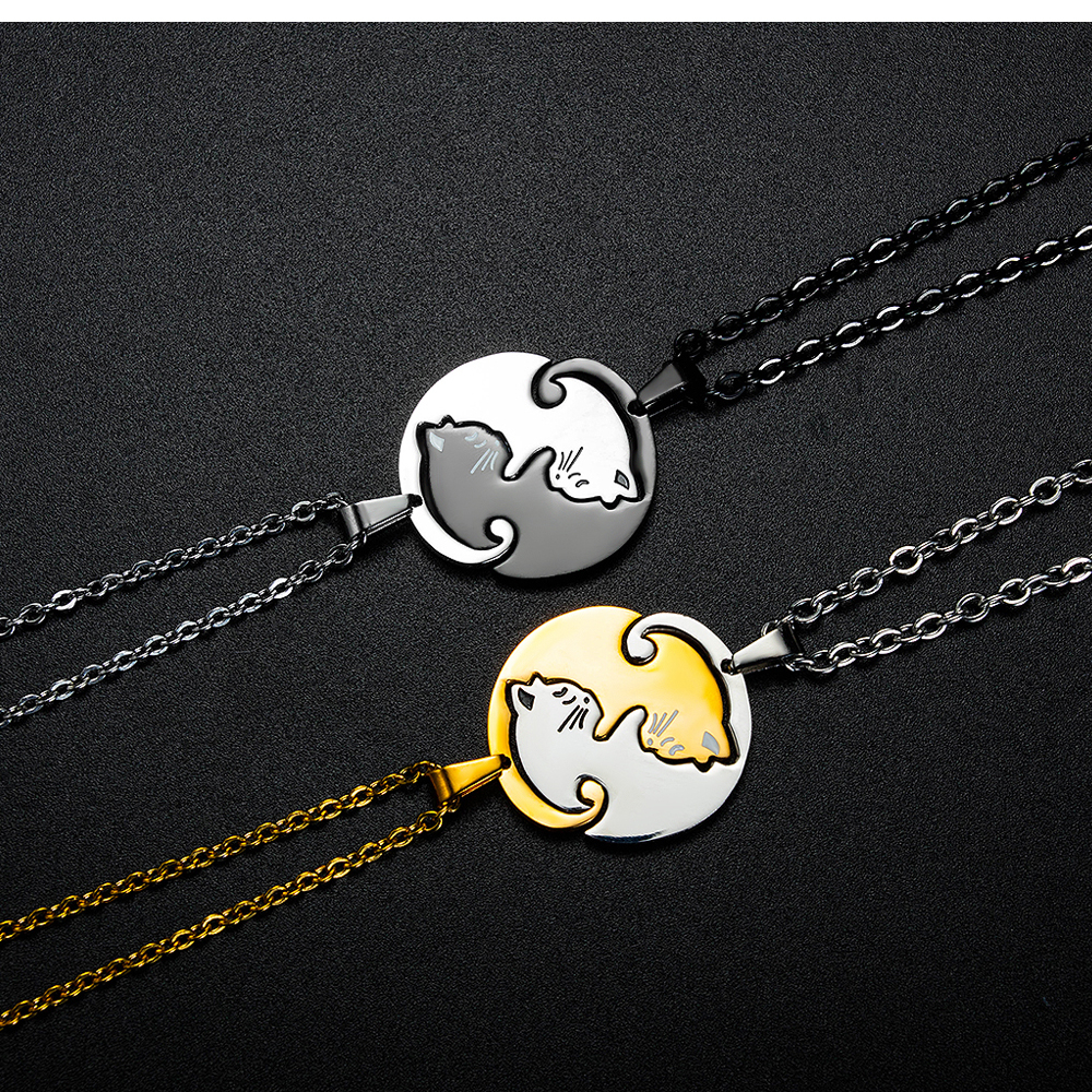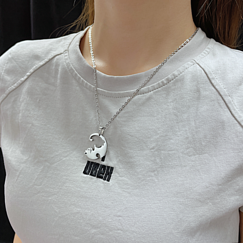 K alung T itanium Hijab Couple Pria Wanita Anti K arat Asli Bentuk Kitten Necklace L iontin korea Aesthetic