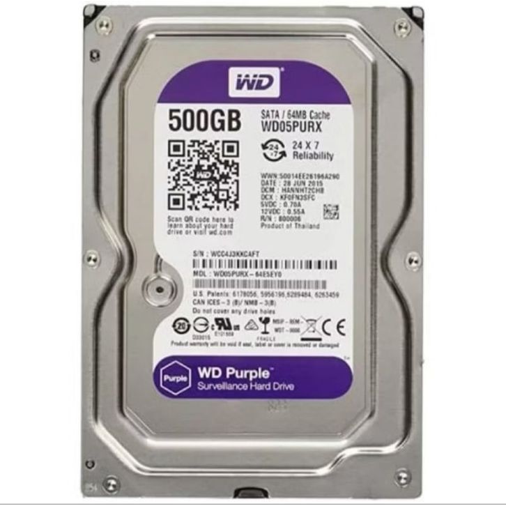 HARDISK 500GB WD PURPLE SATA 35" HDD CCTV DVR Barang New 0 Days