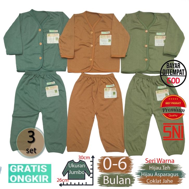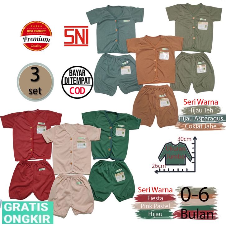 Jumbo 6 pcs 3 Set Setelan Baju Bayi Baru Lahir Lengan Pendek Katun Halus Lembut SNI Baju Celana Paket Newborn Baby Perl