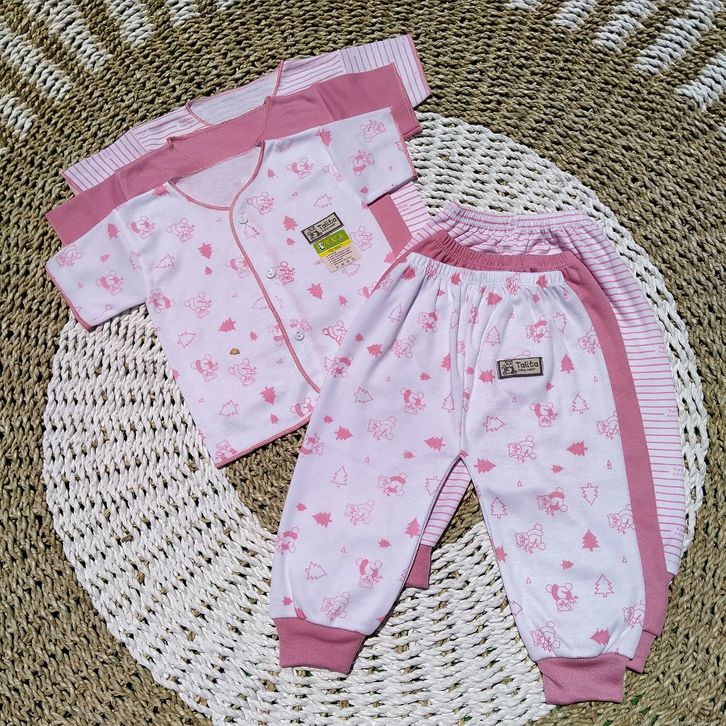 6 PCS 3 STEL BAJU LENGAN PENDEK CELANA PANJANG BAYI BARU LAHIR SERI WARNA NEWBORN