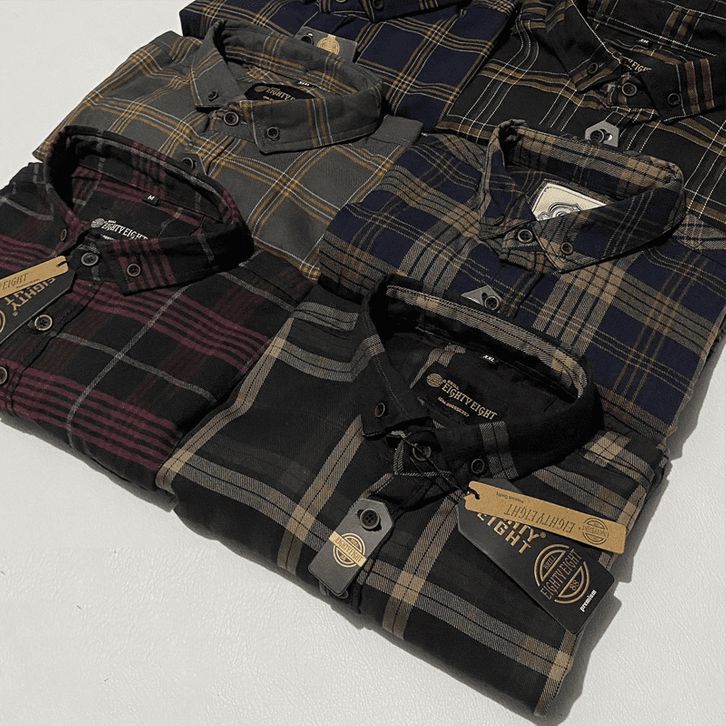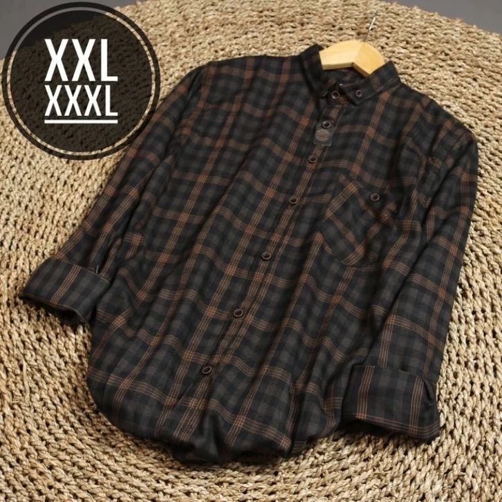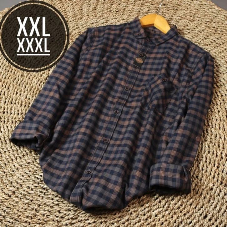 (XXL - XXXL )() Kemeja Flanel Lengan Panjang Premium Choice.idn dan Eighty Eight C10 Jack Brown Pria Wanita Hem Kamej