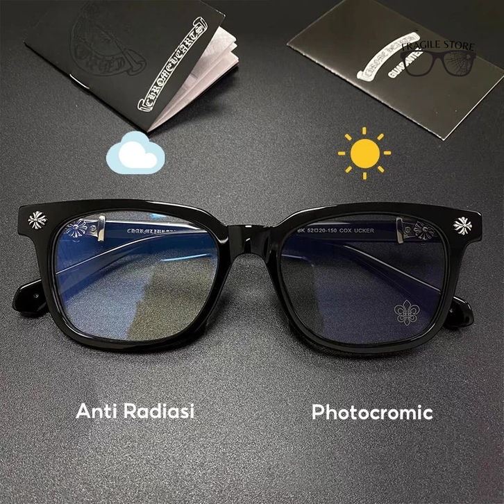 Kacamata Photocromic Anti Radiasi Frame Bulat Cat Eye Bluecromic Minus Plus Normal Untuk Pria Dan Wanita Murah