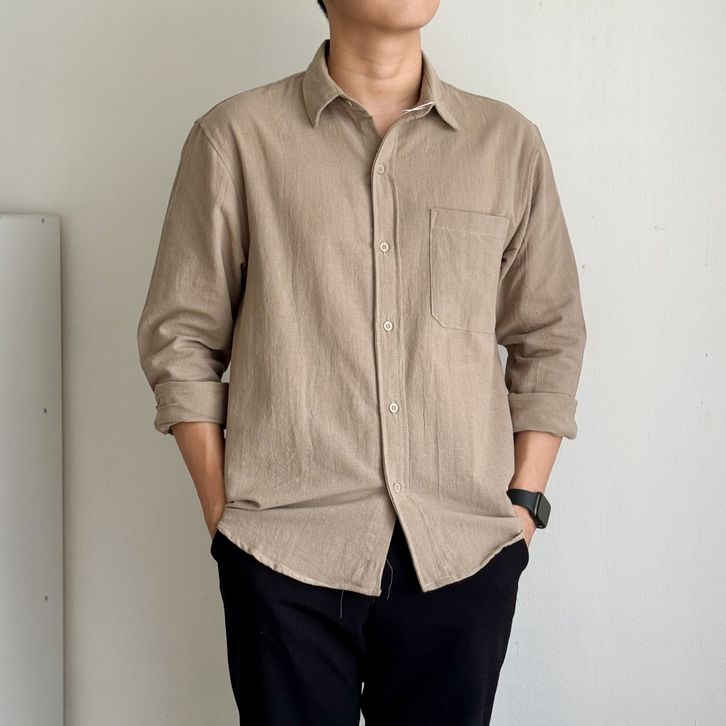 COZYCLUB Long Sleeve Linen Shirt | Kemeja Polos Linen Pria Lengan Panjang | 91