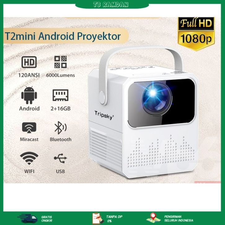 Proyektor Android TV 1080P Smart Projector 6000 Lumen Android 9.0 Ram 2G Rom 16G proyektor mini portable