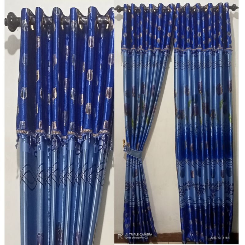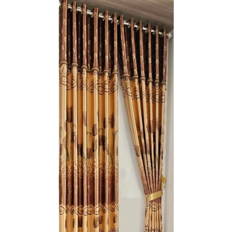 gorden blackout mewah motif Foni tempel bunga tulip tinta gold/hordeng jendela/tirai hordeng gorden elegan