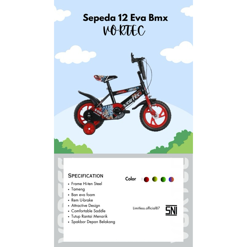 SEPEDA ANAK BMX UKURAN 12 16 VORTEC BAN EVA & KARET