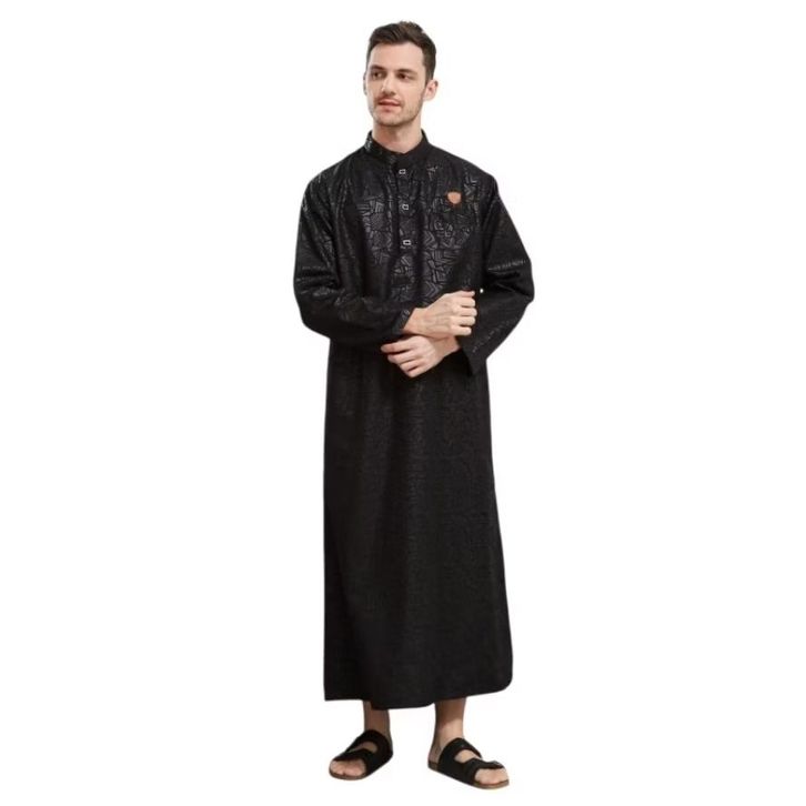 Jubah Gamis Pria Lengan Panjang Bahan Emboss Katun
