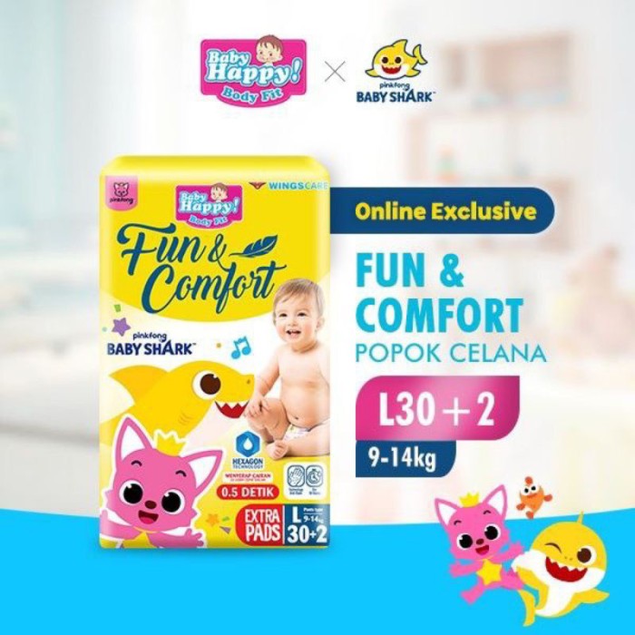 BABY HAPPY FUN & COMFORT PINK FONG M34+2 / L30+2 | PEMPRES ANAK | EDISI SPESIAL PINKFONG PAMPERS BABY PAMPERS ANAK BAB