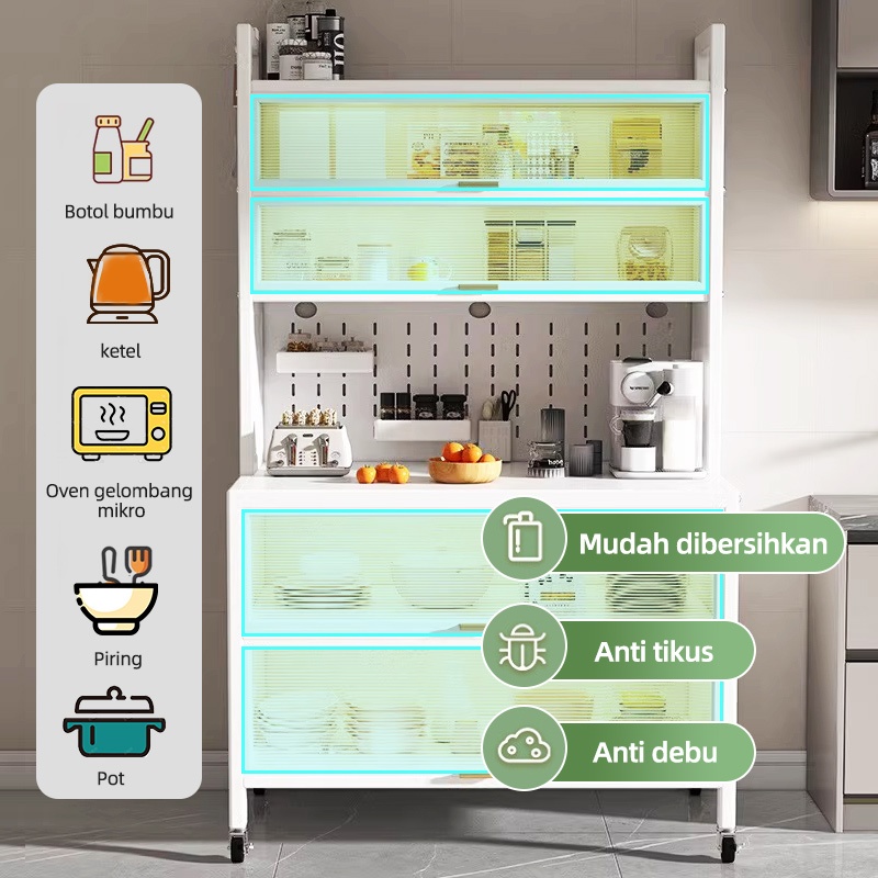 Rak Piring Minimalis Modern Kaca Keramik Tertutup Serbaguna Lemari Dapur Aluminium Stainless Full Besi Ispecle Termurah