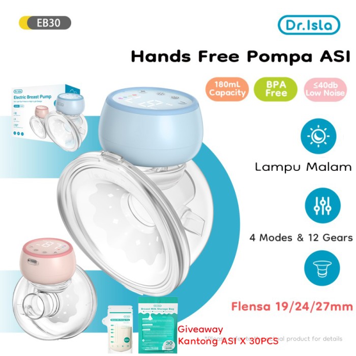 DR.ISLA HANDS FREE WIRELESS WEARABLE ELECTRIC BREAST PUMP POMPA ASI - EB13-BLUE