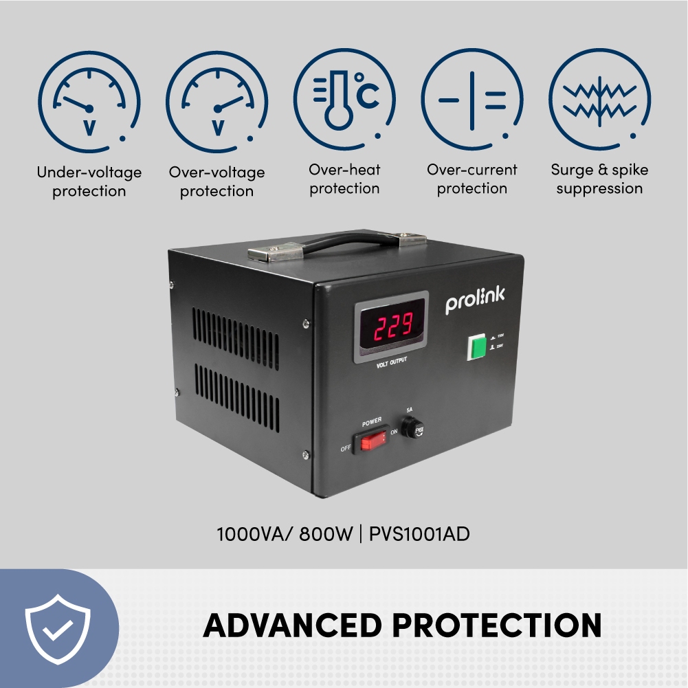STABILIZER PROLINK PVS1001AD AVR SERVO MOTOR CONTROLLED 1000VA