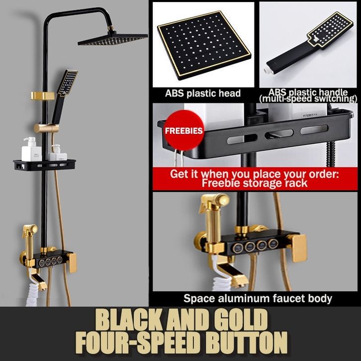 Shower Kamar Mandi Satu Set 4 Fungsi Panas-Dingin Mandi Rain Shower + Keran Cabang Hitam Kepala Shower Dingin Shower Fau