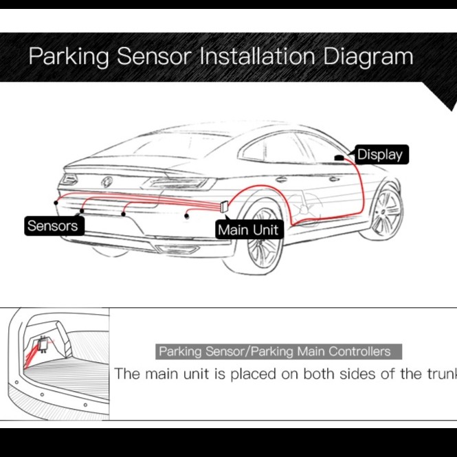 SENSOR PARKIR DEPAN BELAKANG 8 TITIK LED DISPLAY | SENSOR MOBIL MUNDUR - 4 SENSOR PUTIH