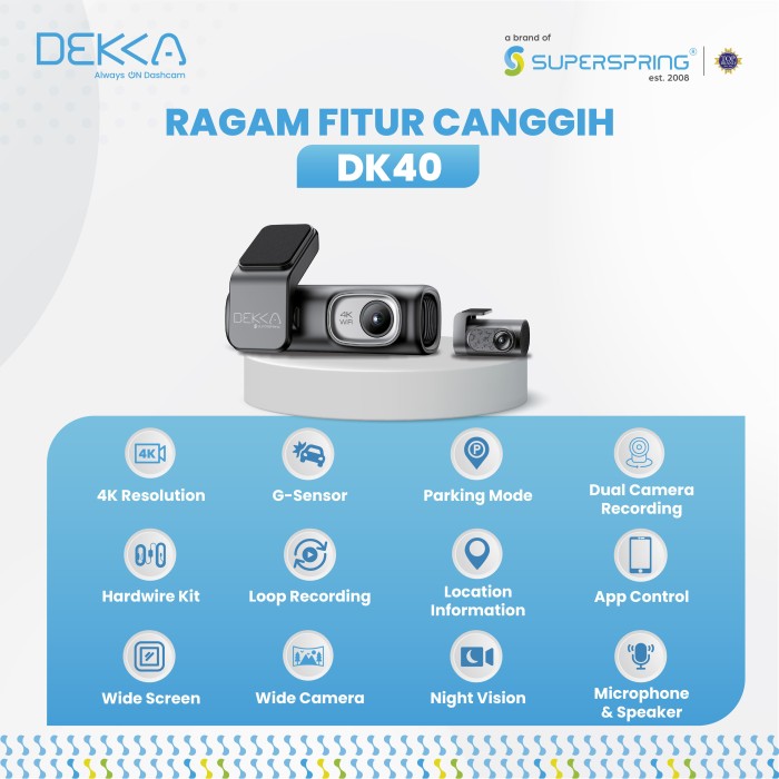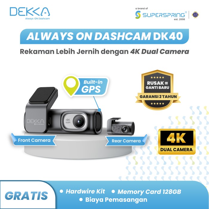 DASHCAM DEKKA DK40 4K DUAL CAMERA HARDWIRE MEMORY INCLUDED