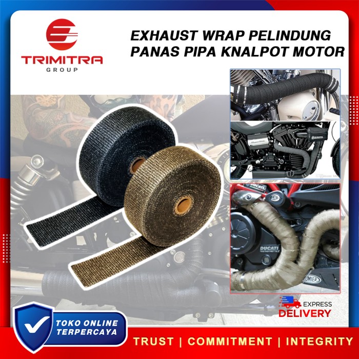 PELINDUNG KNALPOT MOTOR PEREDAM PANAS EXHAUST WRAP 1 ROLL ISI 10 M - HITAM