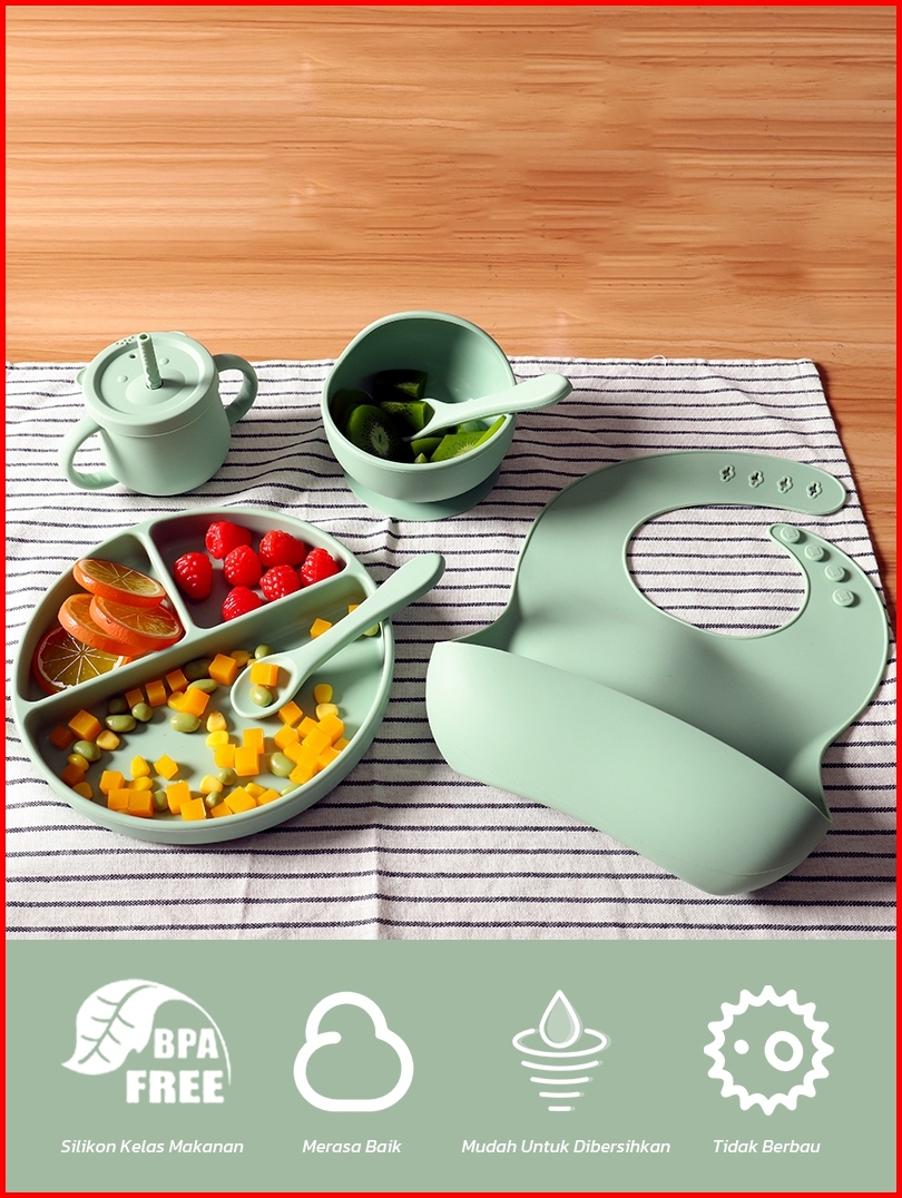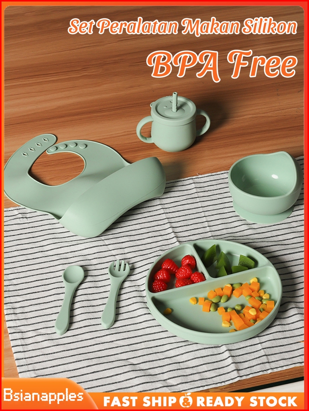 Bsianapples Premium 6 Pcs Set Peralatan Makan Silikon Bpa Free Tahan Suhu Tinggi Ketahanan Suhu Rendah Cangkir Hisap Sil