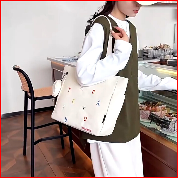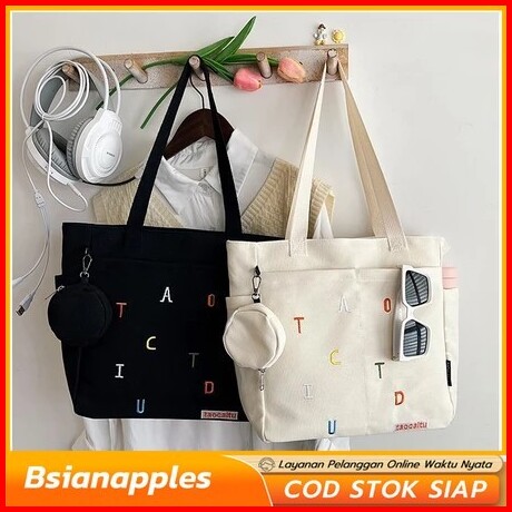 Tas Tote Bag Kanvas Premium Shoulder Bag Tas Bahu Wanita Korean Style Remaja Elegan Sling Bag