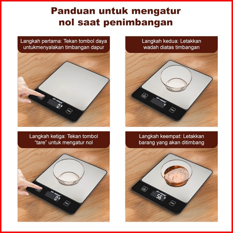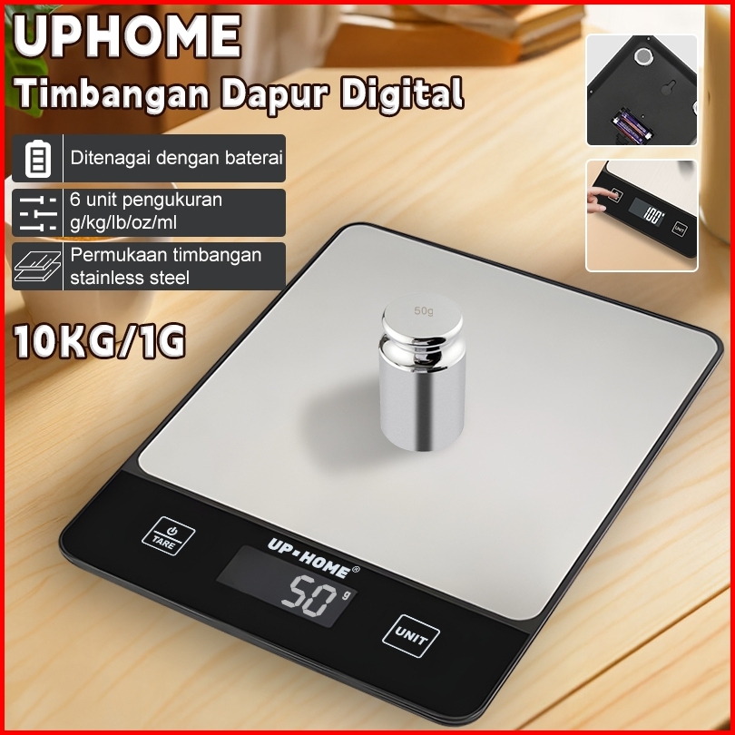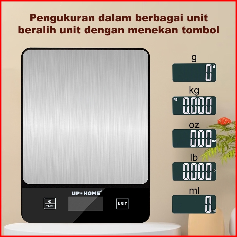 Uphome Timbangan Dapur Digital 10kg 1g Stainless Steel Dengan Tare Timbangan Kue Timbangan Kopi Timbangan G Kg Lb Oz Ml