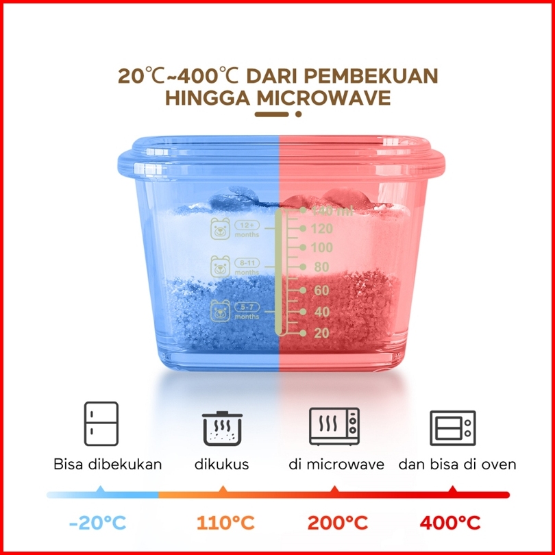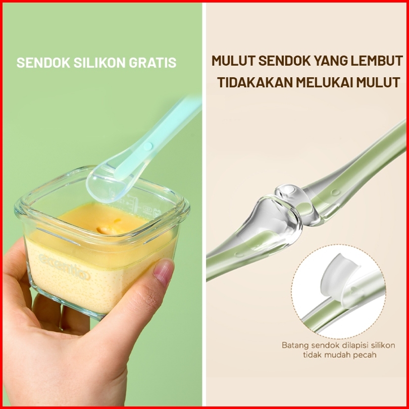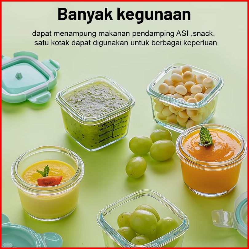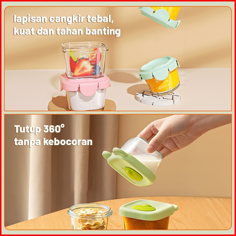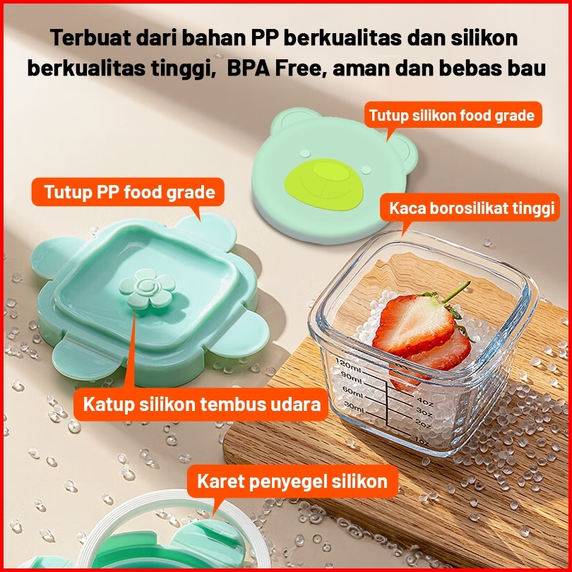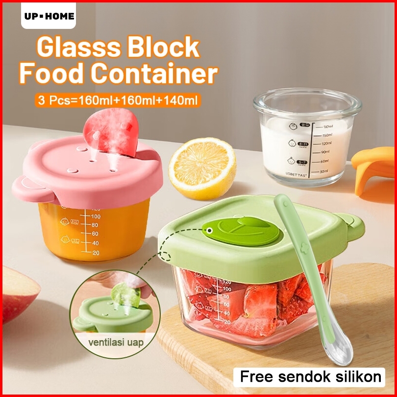 Uphome Baby Mpasi Kaca Food Glass Container 3pcs Kedap Udara Tahan Panas Tempat Mpasi Kaca Free Sendok Silikon 160ml 160