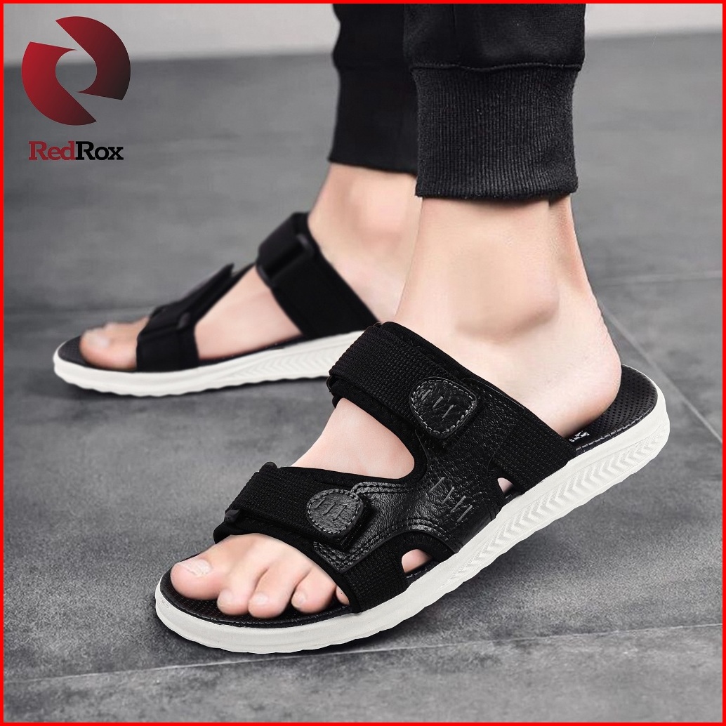 Redrox - Sandal Slide Pria Casual Man Strap White Or Black Shoes Selop Sendal - Voxt 10
