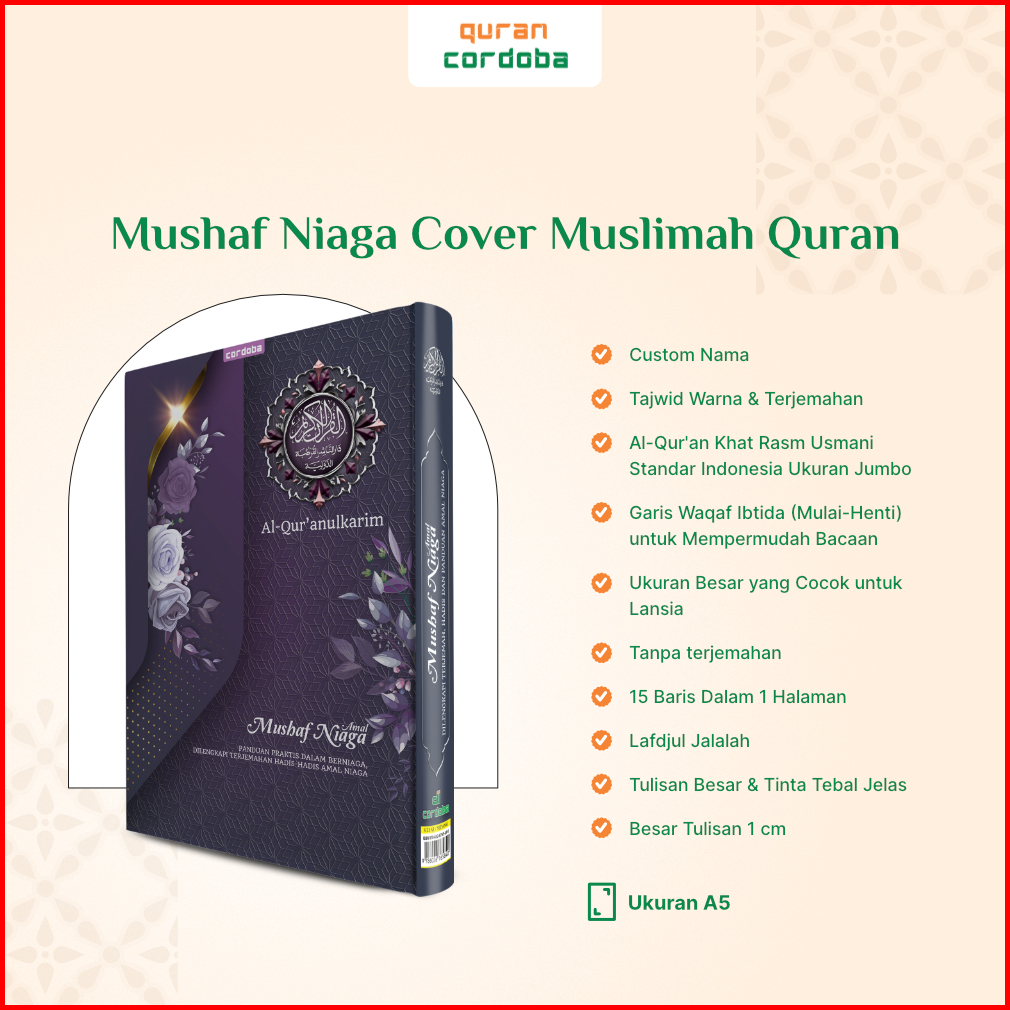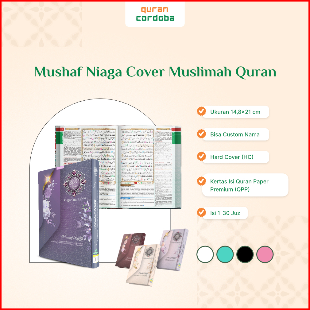 Quran Cordoba - Mushaf Niaga Cover Muslimah Quran Tajwid Warna Terjemahan Custom Nama A5