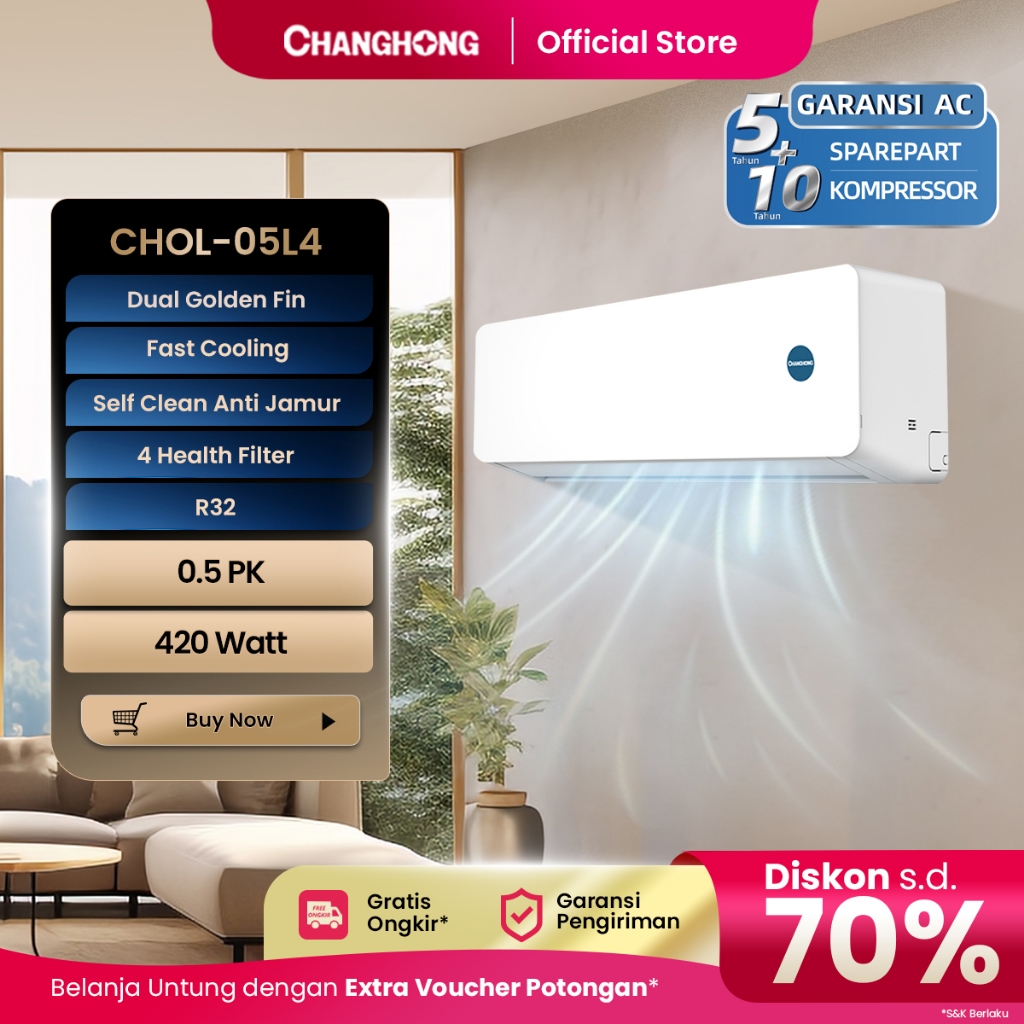 CHANGHONG AC 1/2 PK STANDARD CHOL-05L4 [INDOOR + OUTDOOR UNIT ONLY] [FAST COOLING] [SLEEP MODE] [ECO MODE]]