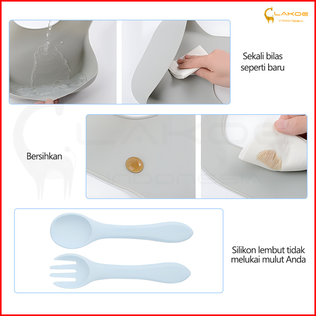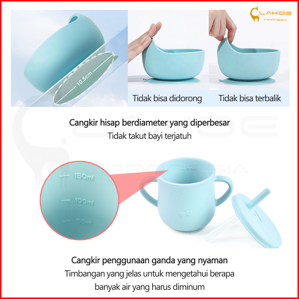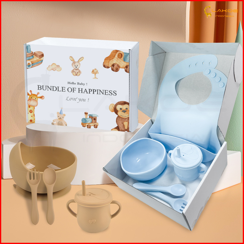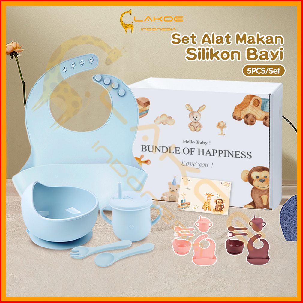 Lakoe 5 In1 Alat Makan Mpasi Bayi Mangkuk Set Tempat Makan Anak Baby Bib Set Hampers Peralatan Makan Bayi Silicone