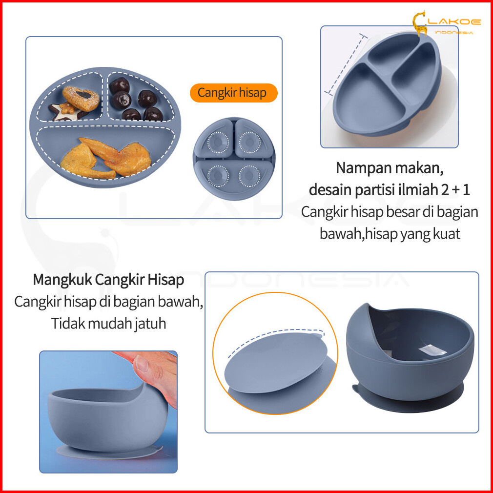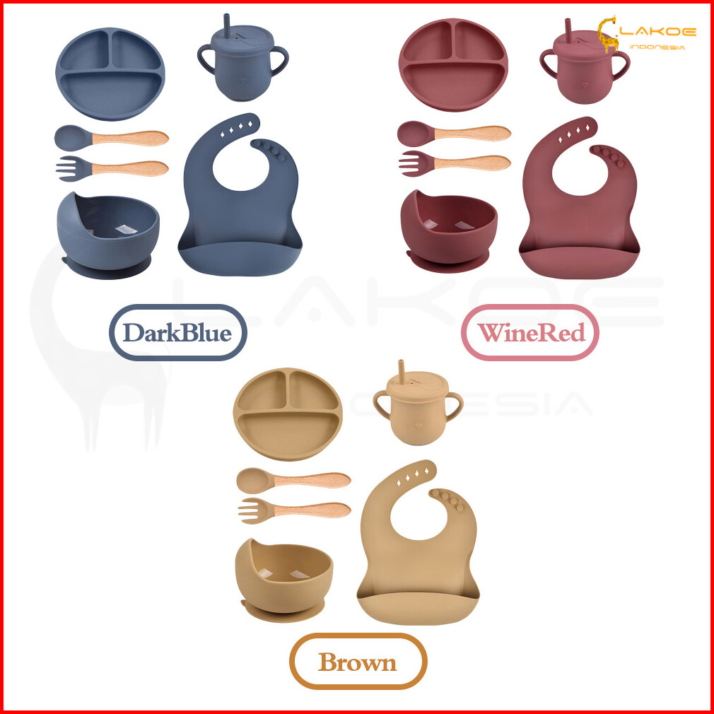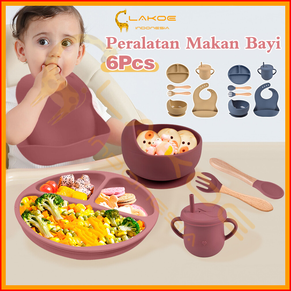 Lakoe 6 In 1 Peralatan Makan Silikon Bayi Tempat Makan Bayi Set Mangkok Piring Sendok Garpu