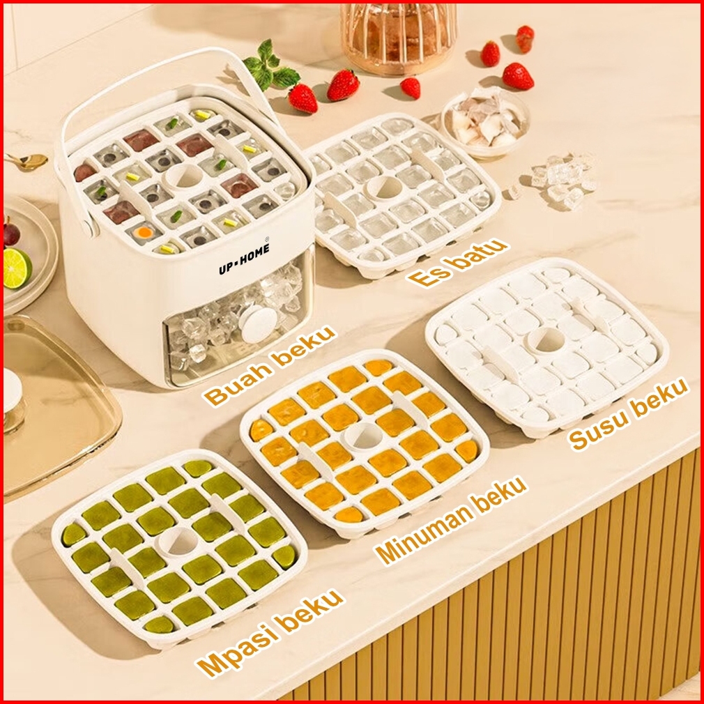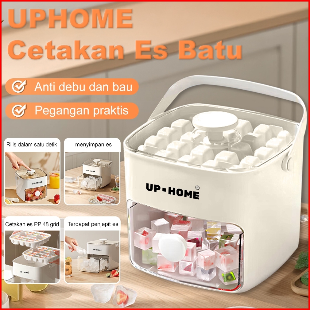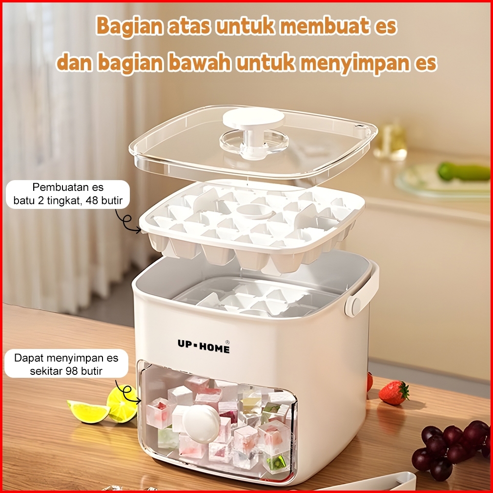 Uphome Cetakan Es Batu 2 Tingkat 48 Butir Ice Cube Trays Mengeluarkan Es Batu Dengan Ditekan Kotak Penyimpanan Es Batu F