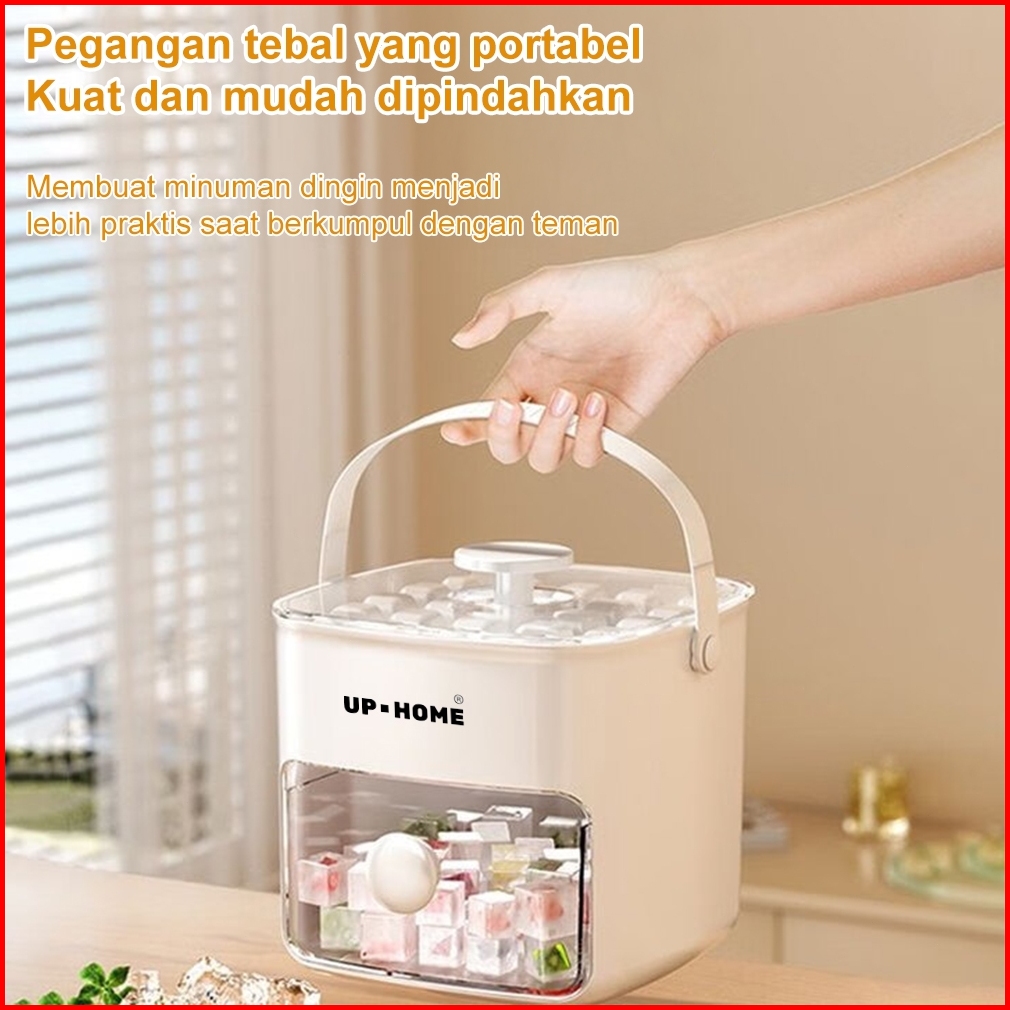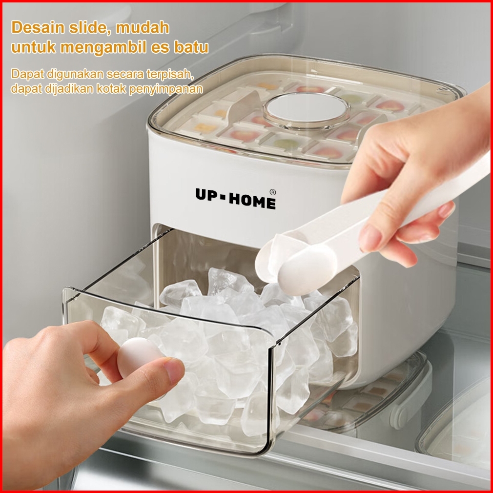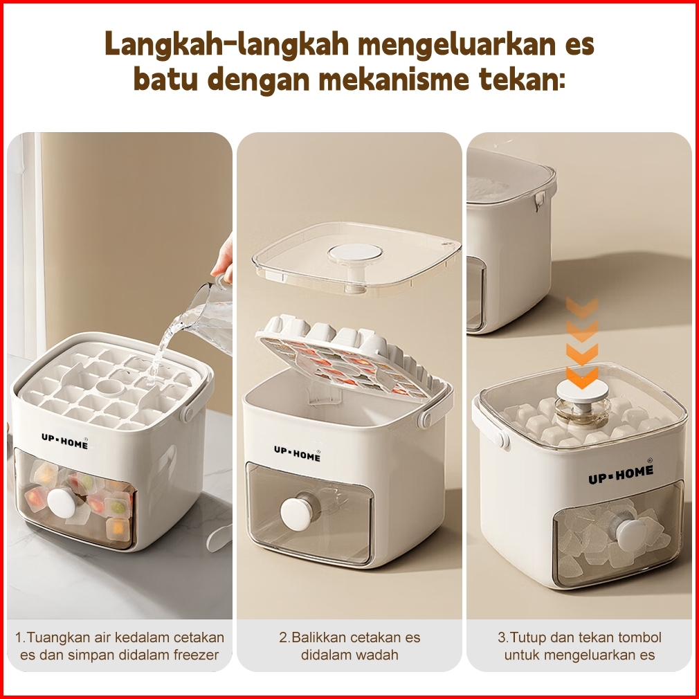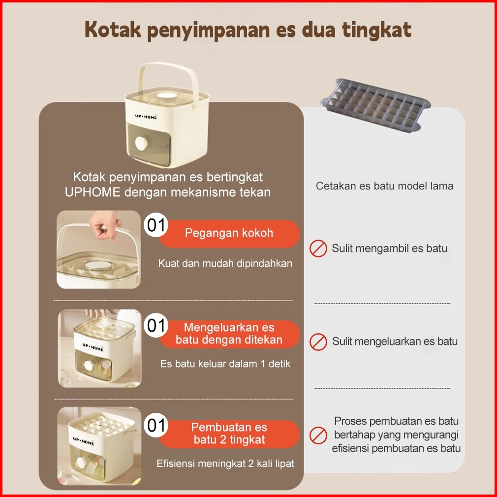 Uphome Cetakan Es Batu 2 Tingkat 48 Butir Ice Cube Trays Mengeluarkan Es Batu Dengan Ditekan Kotak Penyimpanan Es Batu F