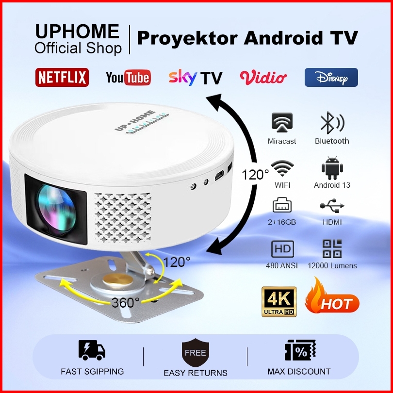 Uphome T269 Pro Proyektor Android Tv 1080p-4k Hdmi Wifi Dual-band 480 Ansl 12000 Lumens Smart Projector Android 13.0 Ram