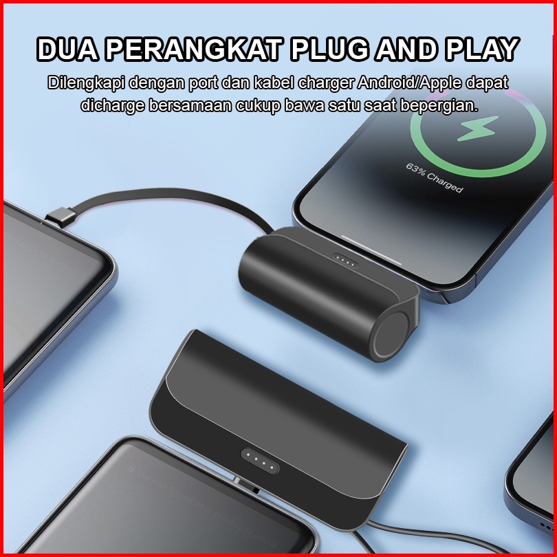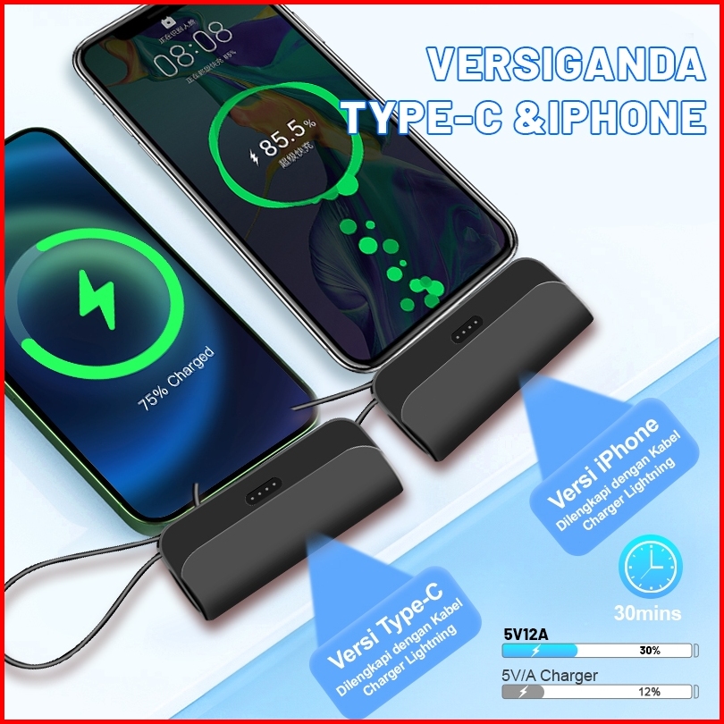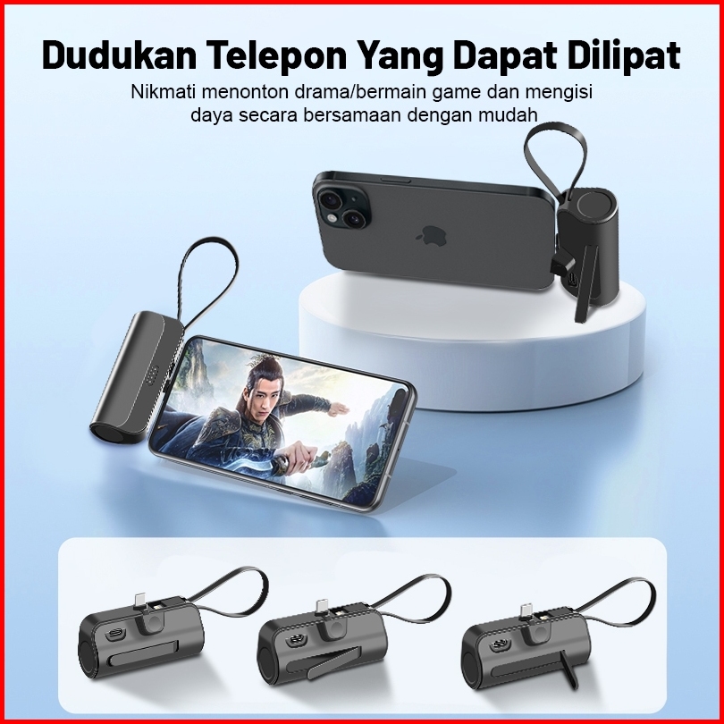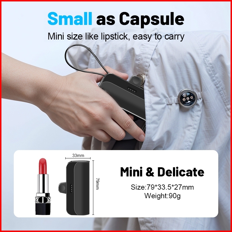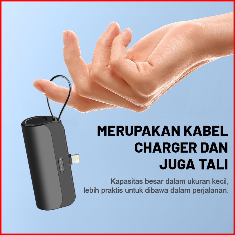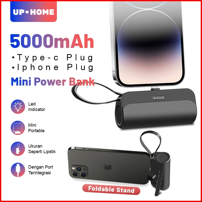 Uphome Mini Powerbank 5000mah Travel Size Dengan Kabel Type-c Ios Mini Emergency Charge Portable Power Bank