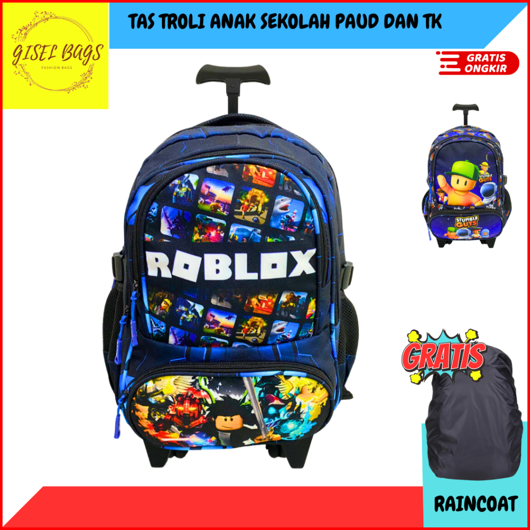 Tas Troli Sekolah Anak Laki Laki Paud Bacpack Koper Tk Anti Air Motif Robl0x