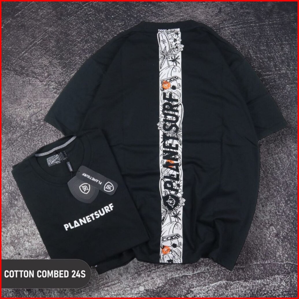 Kaos Planet Surf Hitam Combed 24s Kaos Branded Oversize Kaos Import