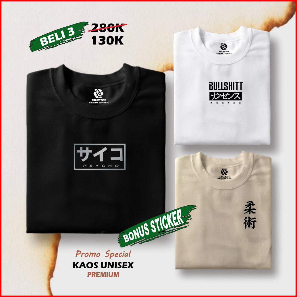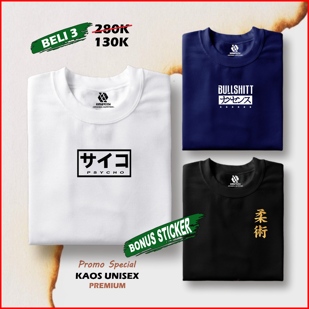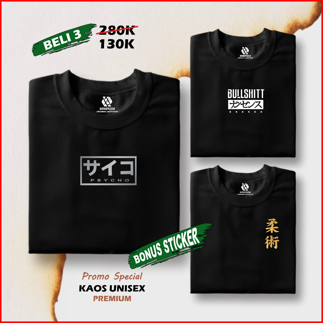 Eimierzoe Buy 1 Get 3 Pcs Baju Kaos Pria Distro Cotton Combed 30s Premium T Shirt Motif Jepang