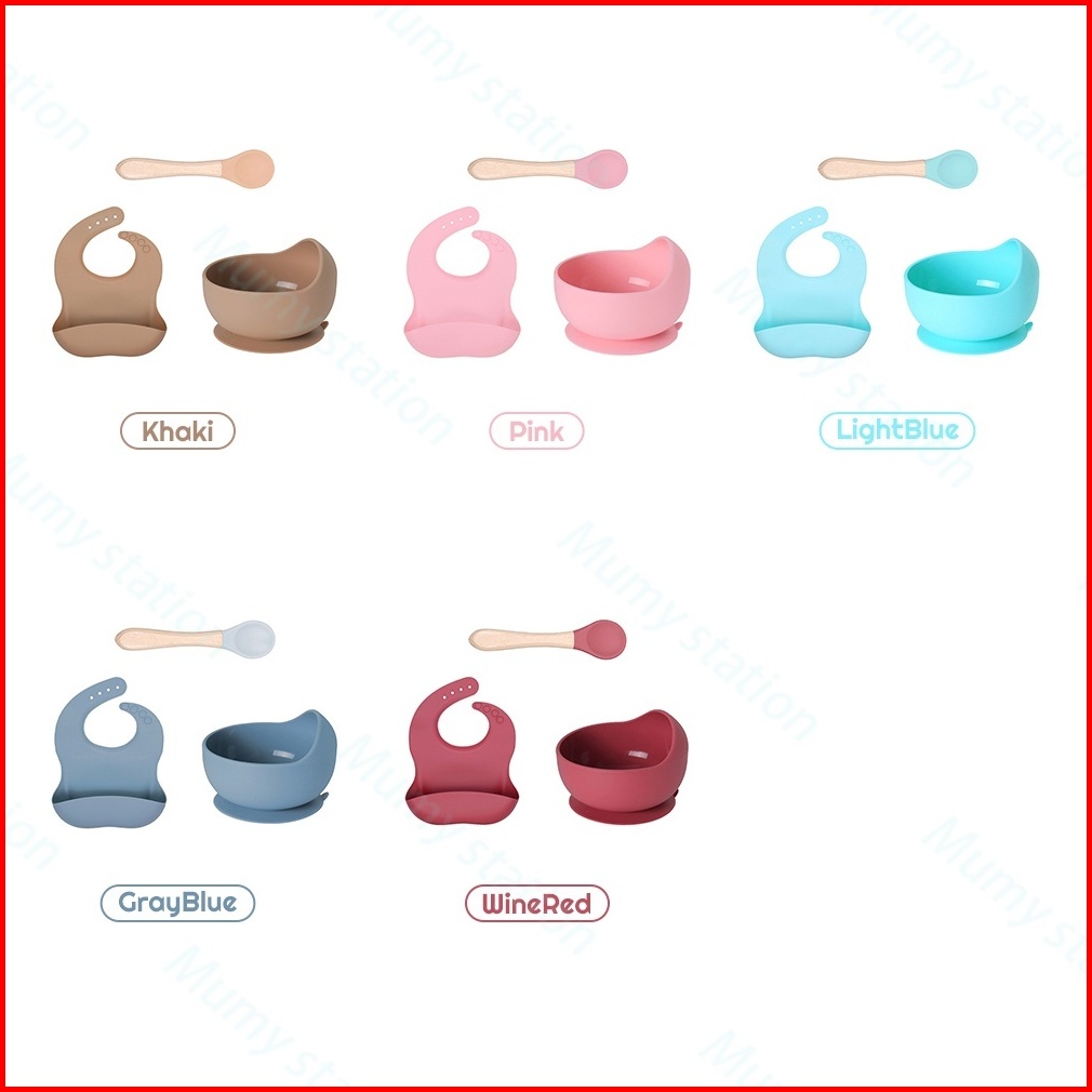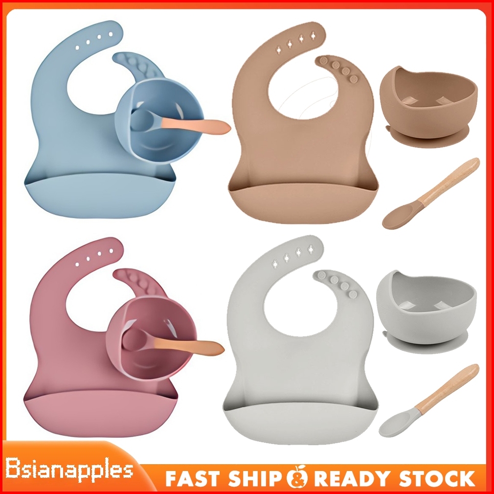 3pcs Set Alat Tempat Mangkuk Makan Silicon Anak Celemek Makan Bayi Bibs Waterproof Bpa Free