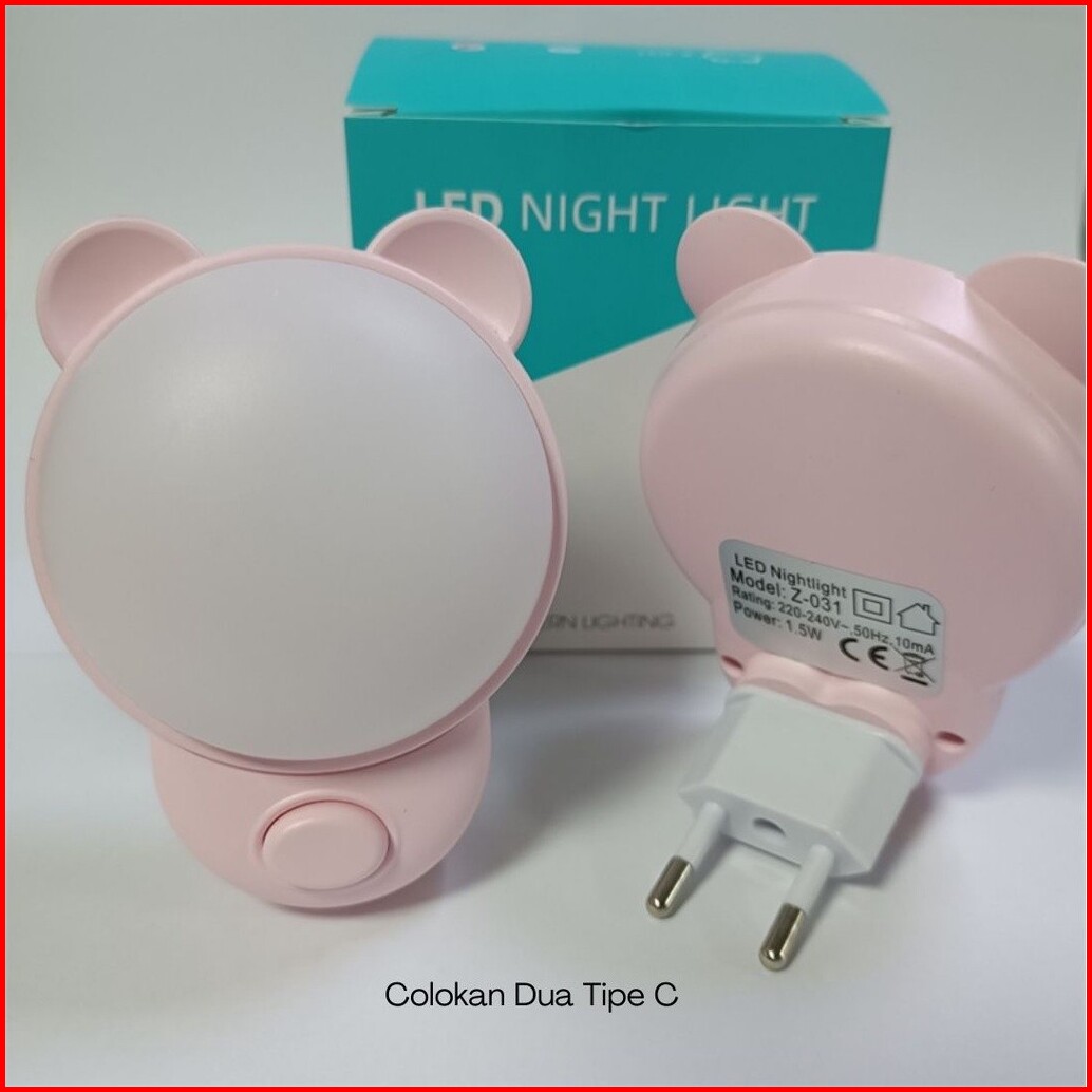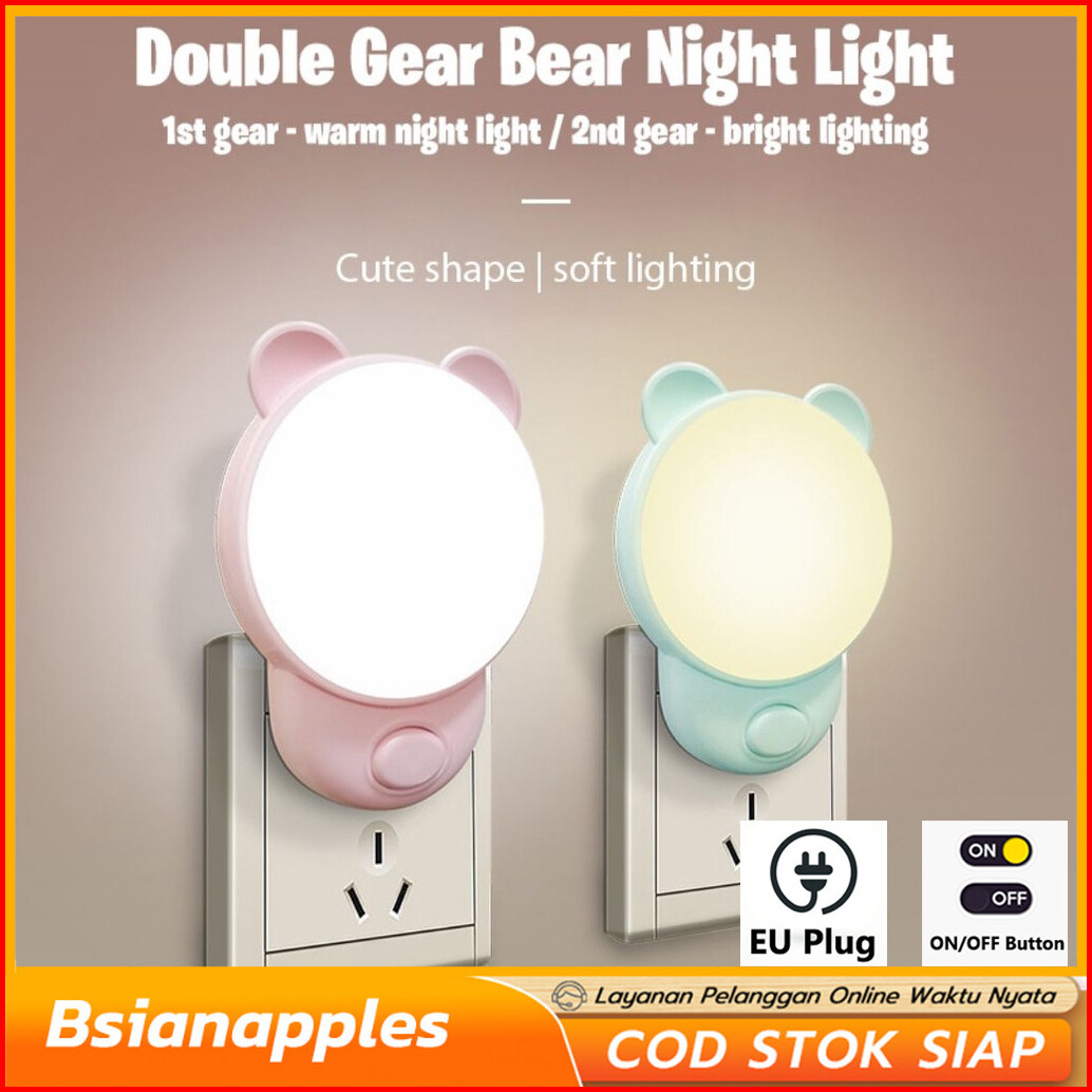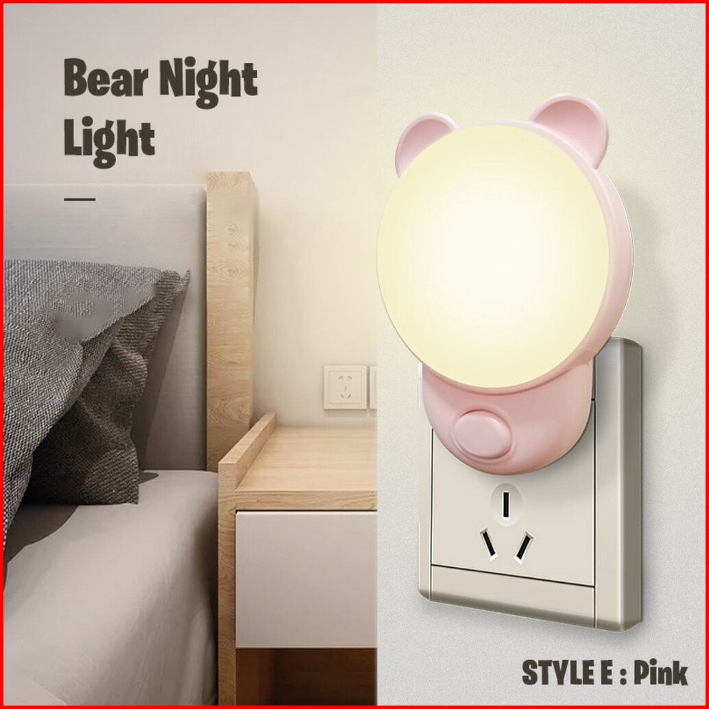 Lampu Tidur Anak Karakter Beruang Colokan Lampu Malam Led Night Light 2 Warna Kamar Tidur