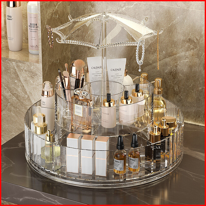Kotak Penyimpanan Kosmetik 360 Dapat Diputar Disk Kuas Makeup Barel Meja Rias Lipstik Rak Penyimpanan Produk Perawatan K