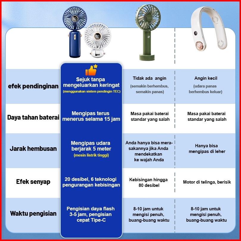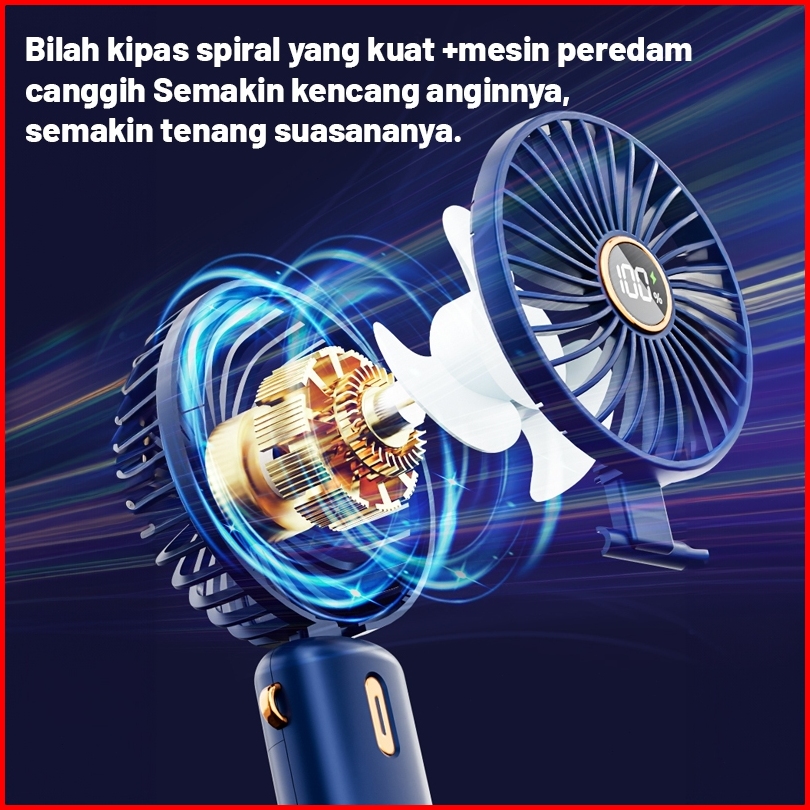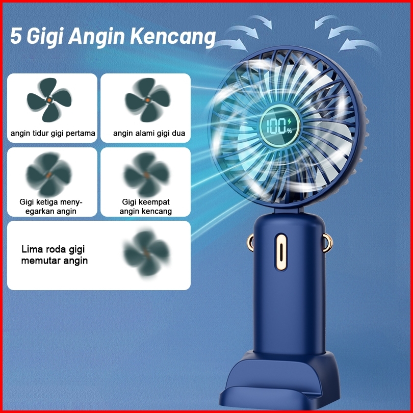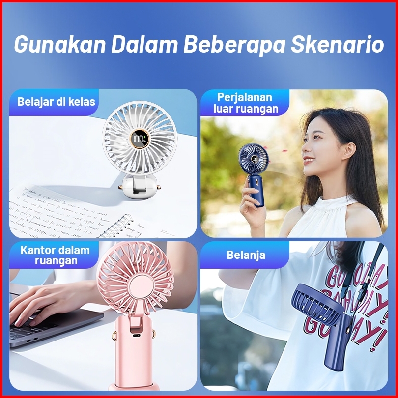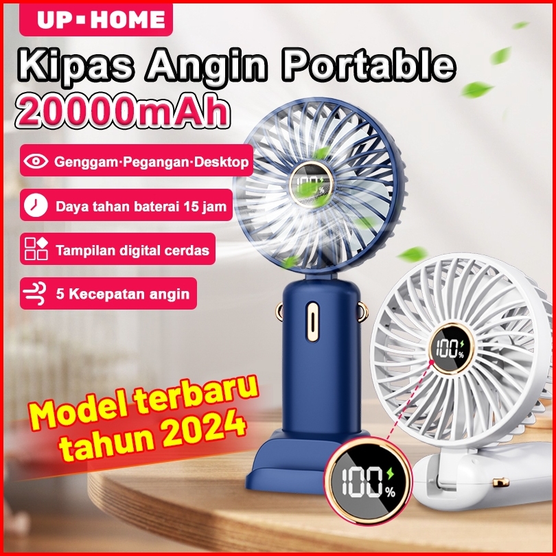Uphome 2024 Kipas Angin Portable Mini Usb 20000mah Lipat Penggunaan Terus Menerus 10-15h Leher 5-speed Wind Led Display