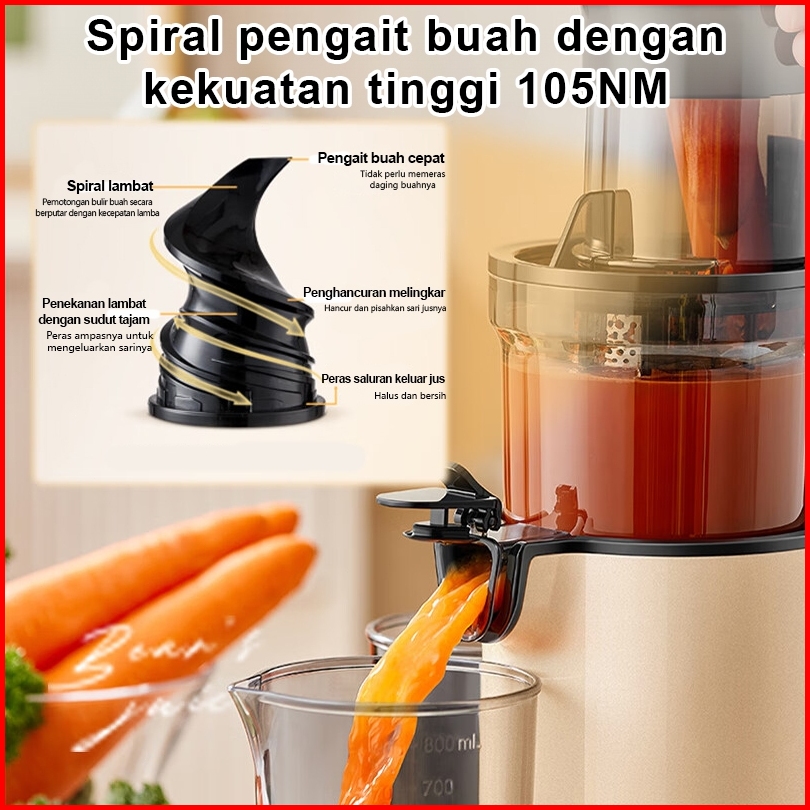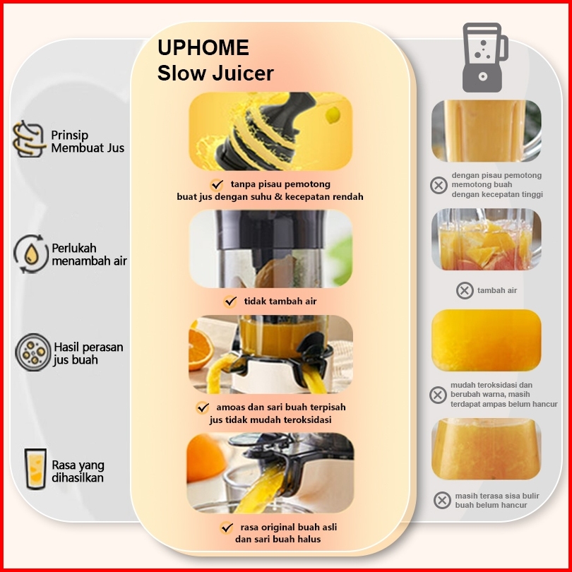 Uphome Multifungsi Slow Juicer 99 Fresh Fruit Juice Blender Large Kaliber Blender Jus Bpa Filtrasi Berlapis Ganda 105nm