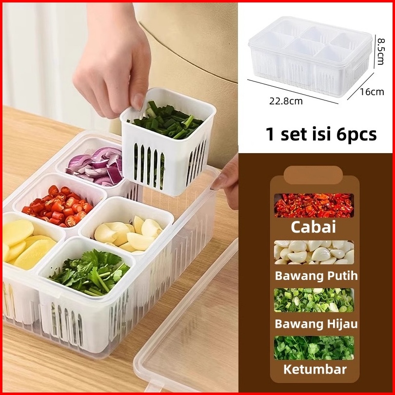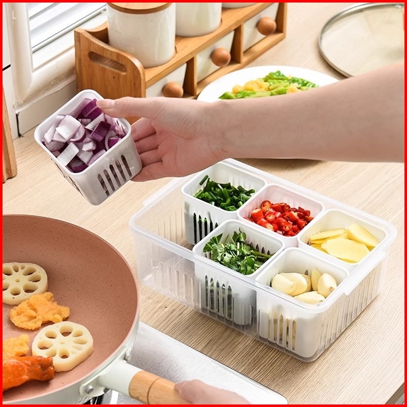 Kotak Saringan Wadah Bawang Wadah Penyimpanan Cabai Bawang Jahe Buah Sayuran Dengan Saringan 9in1
