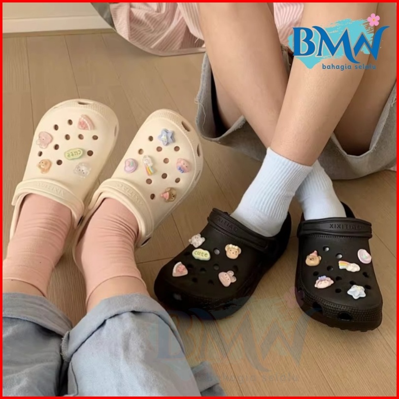 Kumada Sepatu Pantai Sandal Anti Selip Pvc Wanita Baim Pelangi Putri Beruang Kartun Lucu